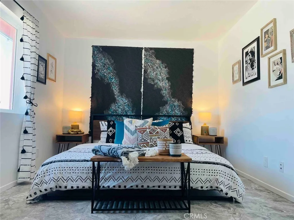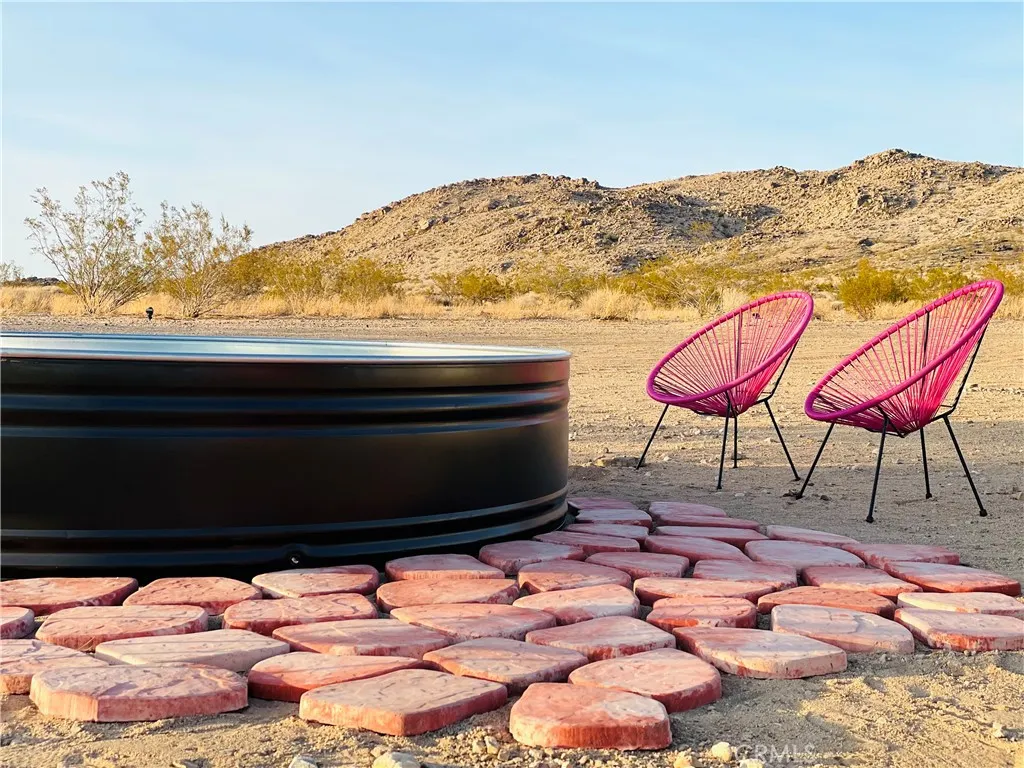 The desert getaway youve been dreaming of has finally hit the market! Nestled in Landers in front of Goat Mountain, this modern retreat offers captivating views and panoramic vistas that stretch for miles. Situated on a 2.5-acre lot and backing up to 490 acres of government land, it feels like having your very own 500-acre backyard! Whether you love hiking, biking, ATV adventures, or simply crave a private fortress of solitude, this is a rare opportunity you wont want to miss. Built in 2019, this 2 bedroom, 1 bathroom home spans almost 800 sq. ft. and is move-in readyjust bring your furniture (or offer to purchase existing). Inside, youll find stylish modern & sleek tile flooring throughout, and a bright living space that flows seamlessly to the outdoors through sliding glass doors. The kitchen is fully equipped with plenty of cabinet storage, granite countertops, and appliancesincluding a built-in microwave, oven, and dishwasher. Both bedrooms are generously sized, each featuring textured designer wallpaper, tile floors, and large windows framing serene desert views. Step outside to the covered patioperfect for BBQs, outdoor dining, or cozy evenings by the fire as you watch the stunning Landers sunsets. The property also includes a garden enclosure, ideal for growing your own fruits and vegetables, plus a relaxing hot tub for stargazing nights under the endless desert sky. Located just off a paved road, youll be only a mile from the world-famous Integratron and Gublers Orchids, and right at the base of Goat Mountain. With stars stretching for miles, this desert gem is the