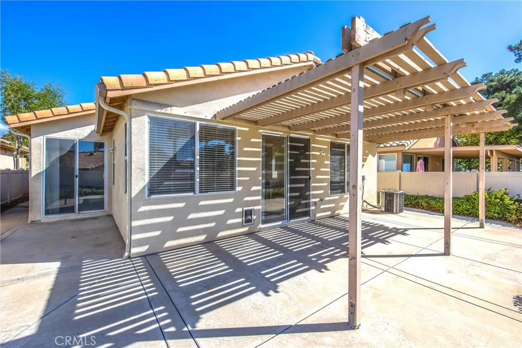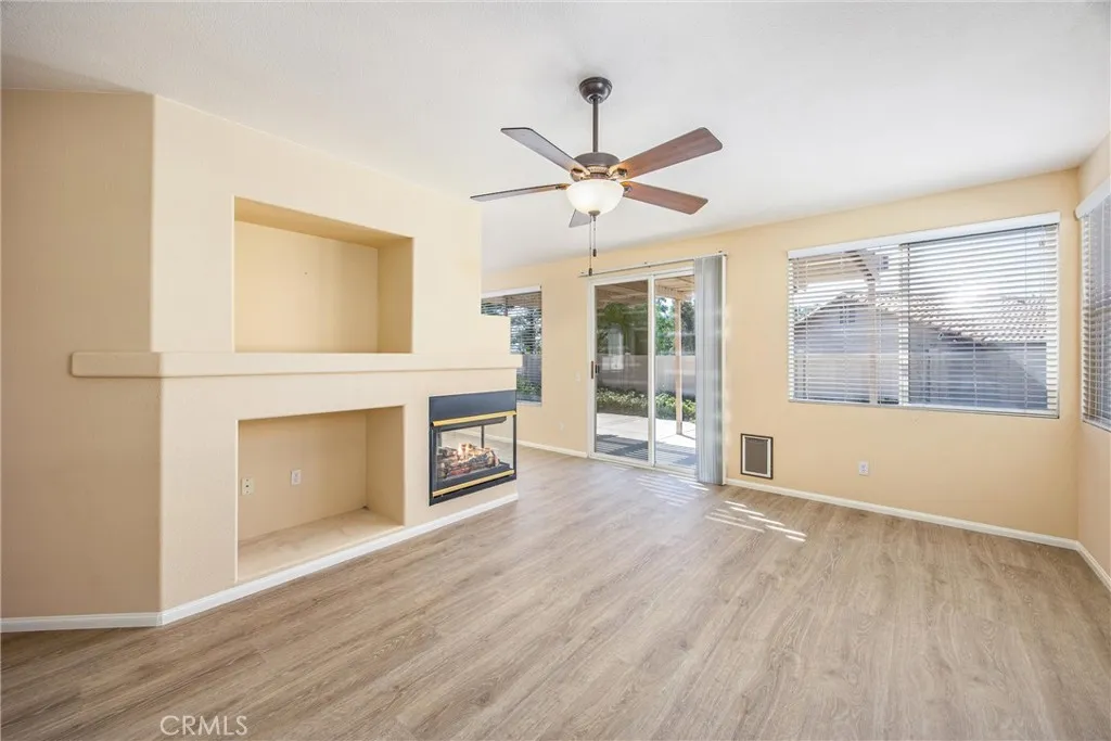 Don't miss this charming 1312 sq. ft. Magnolia home. It has been meticulously maintained and is move in ready. It features new on trend laminate flooring through-out and new carpet in the 2 bedrooms. The living room includes a double-sided gas fireplace, plenty of windows and a sliding glass door to view the lush border plantings that encircle the private backyard with concrete patio and views of the southern sky. Bring your patio table, chairs and umbrella and enjoy your own private oasis. The bright, airy kitchen and dining area has an abundance of (newly painted) white cabinets for storage and an extended serving counter for display or serving while entertaining. There is an indoor laundry room complete with washer & dryer. The primary bedroom features a sliding glass door to the patio, a walk-in closet, en-suite bath with double sinks, updated bronze fixtures & walk-in shower. The guest bedroom is in the front of the home for privacy. The light filled guest bathroom has a tub/shower and is updated with bronze fixtures. Come take a look today for a list of the many other upgrades. The location is one of the highlights of this delightful home, located near the 12th hole of the executive course on a quiet cul-de-sac and just a short walk to the north clubhouse, executive golf course, gym, library, pro-shop, swimming pool/spa, pickle ball and bocce ball courts. In addition, this fabulous, gated enclave provides two other clubhouses, gyms, libraries and pools (one indoors), tennis courts, 2 restaurants, lounge/bar and so much more. Sun Lakes Country Club is the Inland Empire