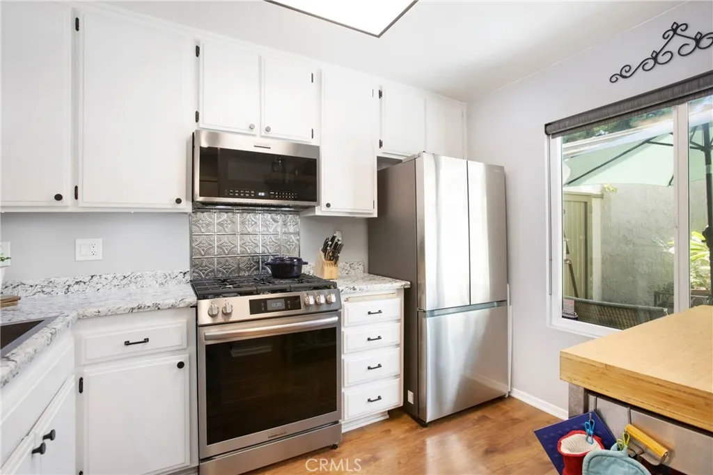 Welcome to your private lakeside retreat tucked away in the highly sought-after Orange Lakes community a rare, nature-filled hideaway nestled below the Orange Hills. This charming single-story, 2-bedroom, 2-bathroom condo with no one above or below offers a unique blend of peaceful living, modern upgrades, and unbeatable convenience the perfect place to relax, recharge, and truly feel at home. Step through the front door with retractable screen into an open and airy floor plan featuring cathedral ceilings and tranquil views of lush landscaping, mature trees, and a serene pond with a cascading waterfall. Enjoy morning coffee or evening wine on your private patio, where cool breezes and the sights and sounds of nature from herons and egrets to ducks, geese, hummingbirds, and even wild parrots make every day feel like a getaway. The certified wildlife habitat surrounding the community brings a sense of peace and wonder right to your doorstep. This home has been thoughtfully updated with new LifeProof carpet and premium pad (2025), newer double-paned windows, new rain gutters (2025), new electrical panel (2024), solar/UV-blocking roller blinds, a solar exhaust fan in the garage, and a full re-pipe for added peace of mind. Additional recent improvements include new stainless steel appliances (20242025), a Wi-Fienabled garage door opener (2024), and updated mirrored closet doors. A newer roof (within 5 years) enhances long-term value, while the attached 2-car garage with direct access through a private courtyard ensures convenience and security. Stroll to nearby shops and restaur