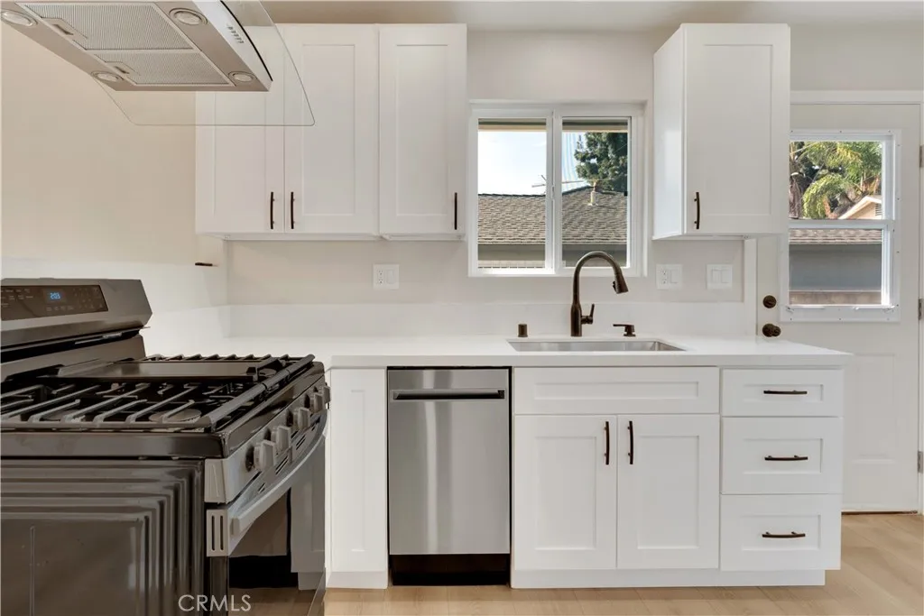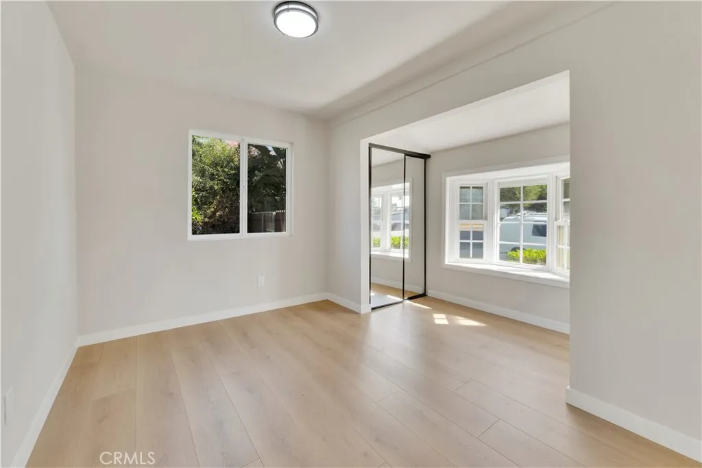 Charming and Beautifully Remodeled Home Near Downtown Los Angeles! This fabulously renovated home features modern upgrades offering a turnkey living experience in a prime location just minutes from Downtown Los Angeles. Enjoy a quick and easy commute along with close access to city attractions, dining, and entertainment. Inside, you'll find a bright and welcoming living and dining area, and a brand-new kitchen complete with new stainless steel appliances, including a dishwasher, stove, refrigerator, and range hood. There's plenty of cabinet space with a lazy Susan in the corner to maximize storage. The stylish bathroom features custom tile work and accent wall, while paneled interior doors throughout the home add a refined touch. Sliding, mirrored wardrobe doors in the bedrooms enhance both style and functionality. The living room is complete with a ceiling fan and light combo for year-round comfort. What would be considered the primary bedroom features two closets and a lovely bay window that brings in natural light and creates the perfect reading nook or cozy retreat. Updated windows throughout the home let in abundant sunlight, creating a cheerful and inviting atmosphere. Outside, you'll enjoy fresh landscaping in both the front and backyard, along with a newly done asphalt driveway. The spacious covered patio is ideal for entertaining or relaxing outdoors, and the conveniently located outdoor laundry area has been enclosed to add everyday practicality. A large side yard offers even more outdoor space perfect for a potential ADU, swimming pool, or expansion of the existi