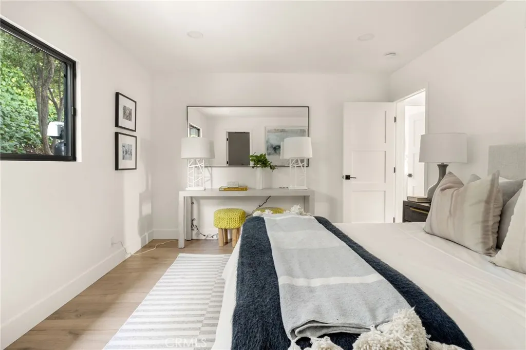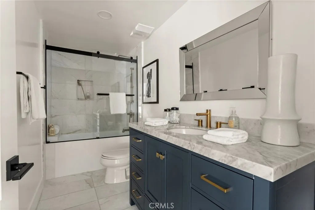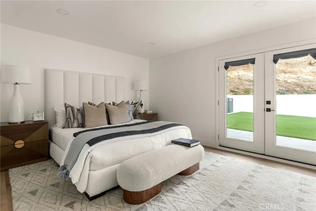 Tucked away in the hills of Encino, this beautifully remodeled single-story 4-bedroom, 3-bathroom home offerss breathtaking views, with elegant modern upgrades throughout. Situated on an expansive 14,000+ sq ft lot, this exceptional home blends timeless design, contemporary finishes, and smart-home conveniences into one serene private retreat. Step through the gated courtyard and new oversized pivot front door into a bright and airy layout featuring formal living and dining rooms, recessed lighting, and French doors with floor-to-ceiling windows that flood the interior with natural light. The large living room includes a gas fireplace, dining area, and seamless backyard accessperfect for entertaining and city-light views. The fully remodeled kitchen showcases Caf (GE) SMART appliances, a breakfast area with patio access, and stylish finishes designed for both function and beauty. The primary suite offers an inviting retreat with French doors opening to the backyard, an ensuite bath with marble floors, double vanity, and a large glass-enclosed shower. All bathrooms have been fully remodeled with modern finishes, complementing the homes cohesive design. Outside, enjoy your resort-style backyard featuring a sparkling saltwater pool and spa (with new heater), patio for lounging and al fresco dining, and low-maintenance artificial turfall oriented to capture unobstructed views of mountains, sunsets, and city lights. A newly designed drainage system efficiently directs water to the street for easy maintenance. Smart-home enhancements include a Tesla charger, remote-controlled app