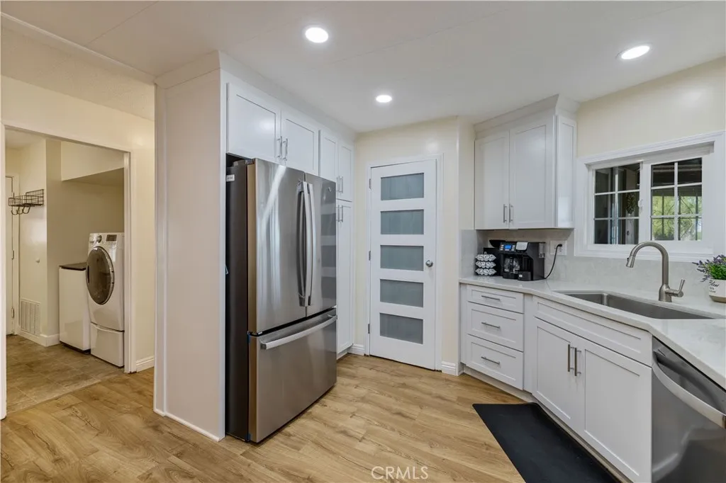 Home Affordability is Back! Welcome to one of the best lots in the highly desirable Greenbriar 55+ gated community in Santa Clarita! Tucked away at the end of the street with no neighbors on one side, this home offers privacy, space, and a lifestyle youll love. Inside, youll find a brand-new designer kitchen with quartz countertops, custom backsplash, sleek new cabinets, and new stainless steel appliances. The expanded layout features two spacious family rooms, updated LVP flooring throughout, and plenty of natural light perfect for both entertaining and everyday comfort. The primary suite is your personal retreat, complete with a private patio and spa-like updated bathroom. Step outside to a second covered patio surrounded by greenery and fruit trees, along with a low-maintenance wraparound yard designed for easy outdoor living. Upgrades include: new PEX plumbing, new roof, energy-efficient windows, updated HVAC system, and remodeled bathrooms with modern tile and vanities. Covered parking for 2+ cars plus extra storage makes this home as functional as it is beautiful. As a Greenbriar resident, enjoy resort-style amenities: sparkling pools, pickleball, bocce ball, parks, and a vibrant social community. This move-in ready home truly checks every box privacy, upgrades, and affordability all in one!