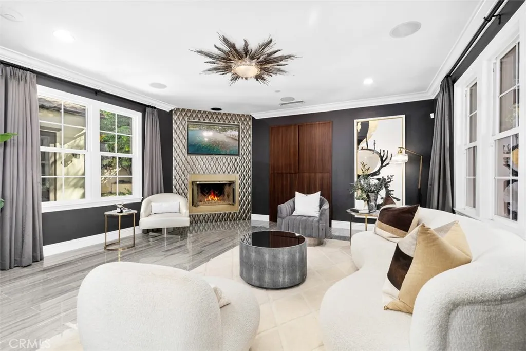 Tucked away at the end of a private cul-de-sac on one of the largest lots in the prestigious guard-gated community of Covenant Hills in Ladera Ranch, this stunning estate offers a rare blend of privacy, luxury, and family-friendly design. From the moment you arrive, the extended driveway and grand motor court set the toneproviding ample parking, ideal for gatherings or growing families. Spanning approximately 4,511 square feet, this beautifully upgraded home sits on an expansive lot that delivers both scale and serenity. Surrounded by mature landscaping and peaceful canyon views, it offers a true retreat just minutes from top schools and neighborhood parks. Inside, elegant, light-filled interiors, high-end flooring, and an open-concept layout make the home perfect for everyday living and entertaining. A dramatic custom staircase welcomes you, while soaring ceilings and refined finishes highlight quality craftsmanship. At the heart of the home is the chef-inspired kitchen remodeled with a massive quartz island, professional-grade Viking 12-burner range, Sub-Zero refrigerator and freezer, double ovens, custom cabinetry, and walk-in pantry. The seamless flow connects indoor and outdoor spaces. Step outside to a resort-style tropical oasis, featuring a custom heated saltwater pool with cascading waterfalls, slide, and oversized spa. Enjoy movie nights under the stars with 3 outdoor TVs, surround sound, a fire pit, and a fully equipped kitchen and bar with built-in BBQperfect for entertaining. A tranquil courtyard with an outdoor fireplace offers a peaceful retreat. The luxuriou