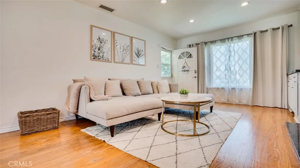 This beautiful single-story residence, nestled in the Northwest District neighborhood of Burbank, boasts traditional architecture with a touch of modern luxury. Built in 1940, this 3-bedroom, 1.75-bathroom home spans 1,478 square feet on a spacious 6,998 square foot lot. As you step inside, you'll be greeted by the open-concept living area, perfect for entertaining. The spacious living room features a cozy fireplace, recessed lighting, and beautiful hardwood floors that flow seamlessly into the kitchen area. The heart of the home is the fully remodeled kitchen, equipped with a spacious island, quartz countertops, and sleek stainless steel appliances. The kitchen's breakfast bar offers a convenient spot for casual meals, and its modern design makes cooking and entertaining a breeze. The large primary bedroom is a serene retreat, complete with ample closet space and direct access to a luxurious spa-style master bath that has been fully remodeled to perfection. The bathroom's modern fixtures and stylish design create a relaxing oasis, perfect for unwinding after a long day. One of the property's crown jewels is its expansive backyard, featuring a sparkling in-ground pool that's perfect for warm weather fun and relaxation. The outdoor space also includes a grassy area, an eating space, and a cabana, creating an ideal setting for alfresco dining and outdoor entertaining. Additional highlights of the property include a 2-car attached garage, central heating and cooling system, and a solar pool heater. With its convenient location in Burbank, this property offers easy access to ma