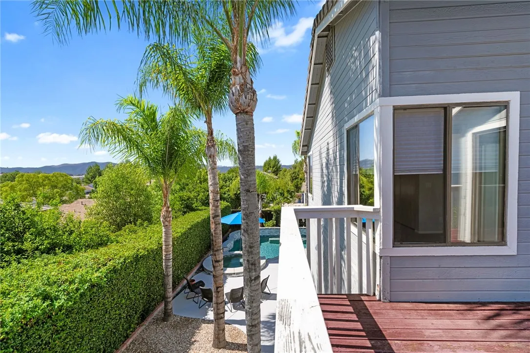 Welcome to the heart of Temecula where this beautifully remodeled 5-bedroom pool home sits on a quiet cul-de-sac in the desirable Villages community, just minutes from Temecula Wine Country that is globally recognized and considered a top destination on the world stage for wine! This lovingly maintained home by the same owners the past 24 years, has been transformed with a stunning remodel that truly elevates its beauty. The removal of the wall between the kitchen and dining room creates a bright and open flow, complemented by new light-toned LVP flooring that gives the home a breezy, modern feel. The kitchen shines with crisp white cabinetry, sleek counters, stylish backsplash, and stainless steel appliances, while new downstairs windows and a tankless water heater enhance both comfort and efficiency. Curb appeal abounds with lush green grass and an inviting covered entry that sets the tone for the stylish interior. Inside, on-trend designer touches carry throughout, including a downstairs bedroom with direct access to a full bath, perfect for guests or multi-generational living. Upstairs, the spacious primary suite boasts its own private balcony, dual sinks, and a separate tub and shower, while three additional bedrooms share a full bath. Step outside to your private backyard retreat where the sparkling pool, redone in 2021 with features like a built-in bench and umbrella holder, is ideal for both play and relaxation, and the bubbling spa invites you to unwind under swaying palms in the gentle Temecula breeze. You will also enjoy a solid patio cover and low maintenance la