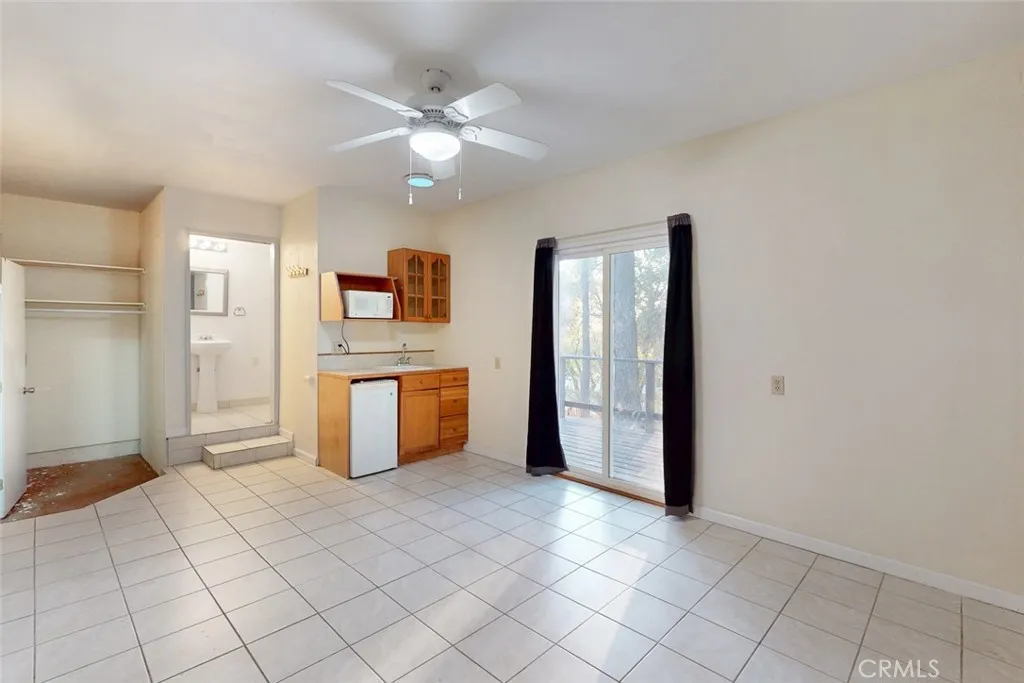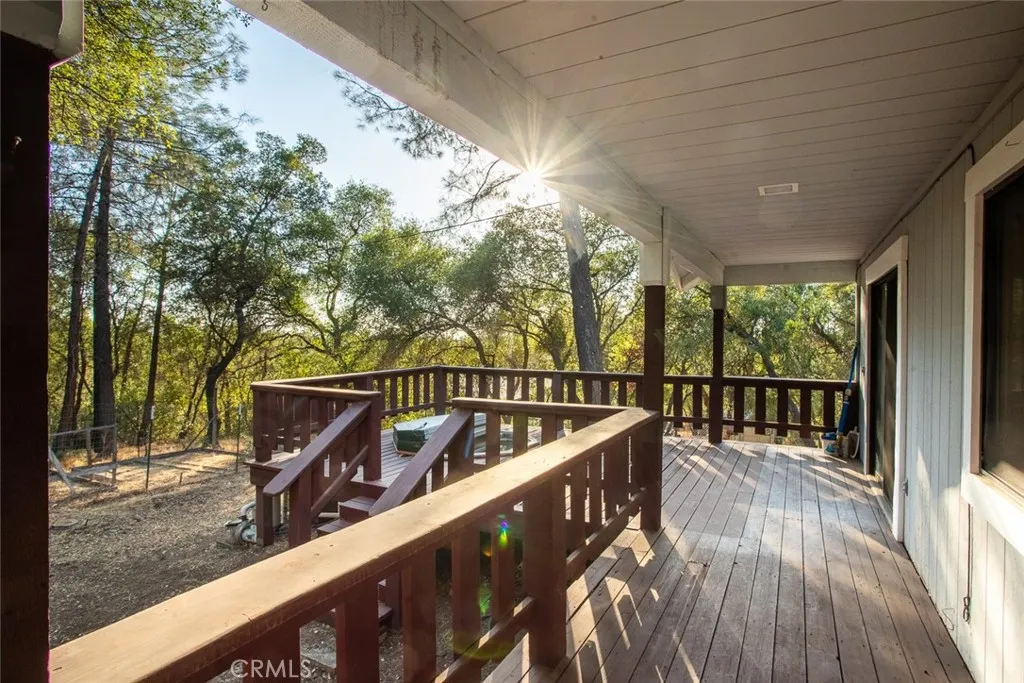Nestled on a full acre surrounded by mature trees, this custom home blends rustic charm with modern comfort. Step inside the vaulted living room, where exposed beams, warm wood tones, and a wood-burning stove create a cozy yet spacious retreat. The floorplan offers both function and flexibility. A generous mudroom/laundry/pantry space off of the kitchen connects seamlessly to the garage, keeping daily life organized. The bedrooms are spacious, with the primary suite featuring a private bath and soaking tub for relaxing at the end of the day. Outdoors, a wraparound deck with built-in spa invites you to unwind or entertain while taking in the peaceful natural setting. Some highlights include a BRAND-NEW roof, central heating & air, and lots of storage. Additionally, there is separate living space with kitchenette, bathroom, and private entry with attached porch, making it a fantastic option for multigenerational living, guests, or rental income. Located on a quiet street among other custom homes, the property offers the perfect balance of seclusion and conveniencejust minutes from town and the lake. With its one-acre parcel, versatile spaces, and timeless design, this home is ready to welcome its next chapter.