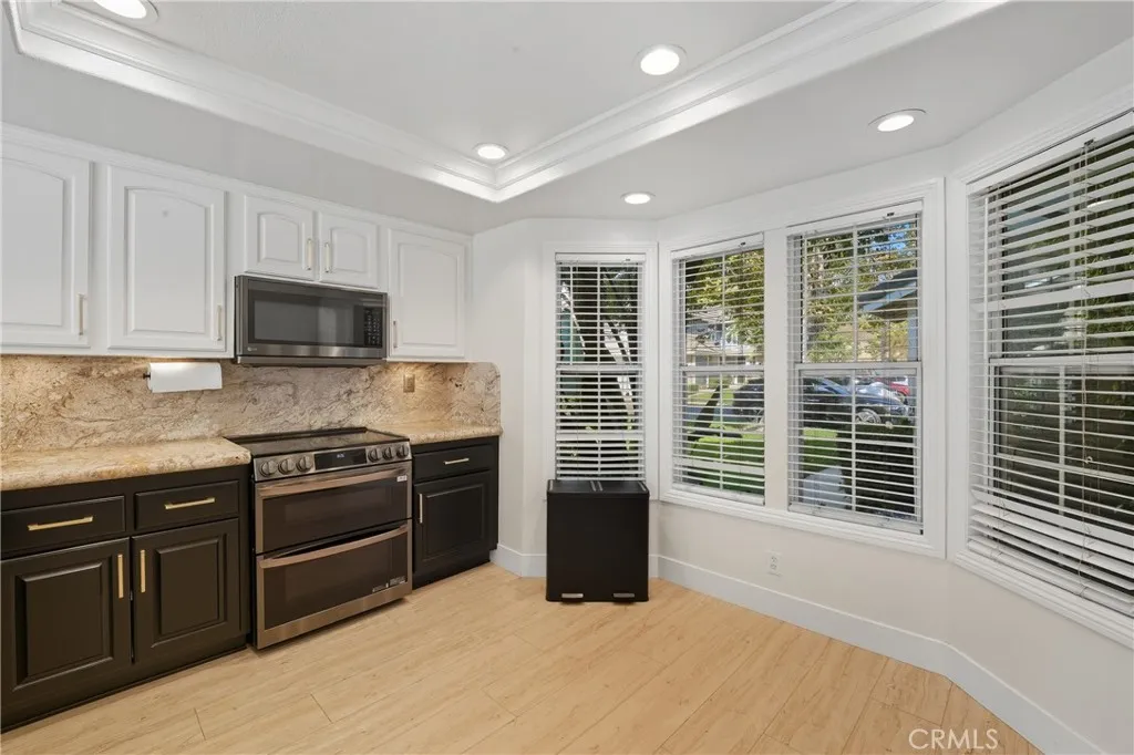 Welcome to 6070 E Summit Court, a beautifully upgraded residence nestled in the highly desirable Embassy Pointe community of Anaheim Hills. This inviting home features 3 spacious bedrooms and 3 tastefully remodeled bathrooms across 1,445 square feet of thoughtfully designed living space. Step inside to a bright, open layout enhanced by soaring ceilings, elegant luxury Fireplace with custom made mantel, vinyl flooring, and recessed lighting throughout. The heart of the home is the stunning kitchen, complete with updated cabinetry, granite countertops, stainless steel appliances, crown molding, and recessed lighting, perfect for both culinary creativity and casual entertaining. Each bathroom has been meticulously renovated, offering a touch of modern sophistication. Outside, discover your own private backyard oasis with breathtaking mountain and hillside views. Enjoy system paver flooring, meandering garden paths, a lush grass area, and a cozy gas fire pit, ideal for gatherings or peaceful relaxation. Living in Embassy Pointe means more than just owning a beautiful home, its about embracing a vibrant lifestyle. Residents enjoy access to a sparkling community pool and spa, top rated schools, convenient shopping, and scenic trails for hiking and biking.
