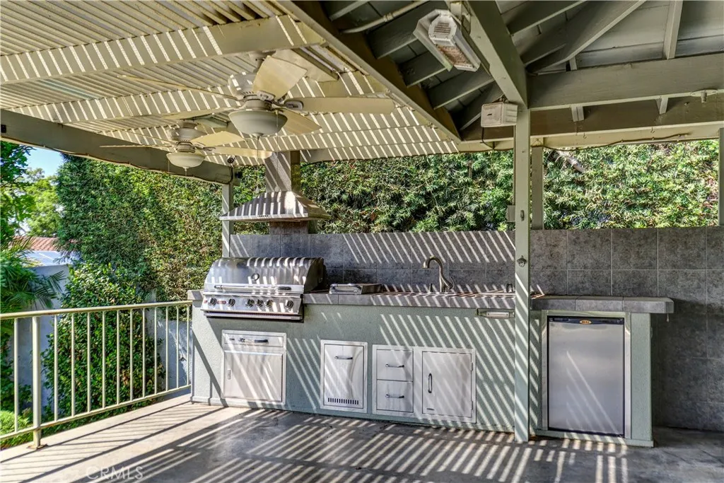 Welcome to 14120 Wyant Lane a beautiful 5-bedroom, 4-bath home with 2,863 sq. ft. of living space, ideally situated on a 9,100 sq. ft. lot at the end of a quiet cul-de-sac. Step inside to discover an open and spacious floor plan designed for comfort and entertaining. The formal living and dining rooms each feature cozy fireplaces, while the expansive family room offers plenty of room to gather. At the heart of the home, the chefs kitchen impresses with a Viking 6-burner gas stove, oversized built-in KitchenAid refrigerator, center island, and abundant counter and cabinet space. The primary bedroom offers privacy at one end of the house, with doors leading to outdoor patio dining area, an en-suite bathroom with dual sink vanity, walk-in shower and a soaking tub. Four additional bedrooms provide flexibility for family, guests, or home office space. Notable upgrades include dual-pane Anderson windows, a tankless water heater, and an inside laundry room with extensive cabinetry. Outside, the private backyard features a fully equipped outdoor kitchenperfect for summer barbecues and year-round entertaining.