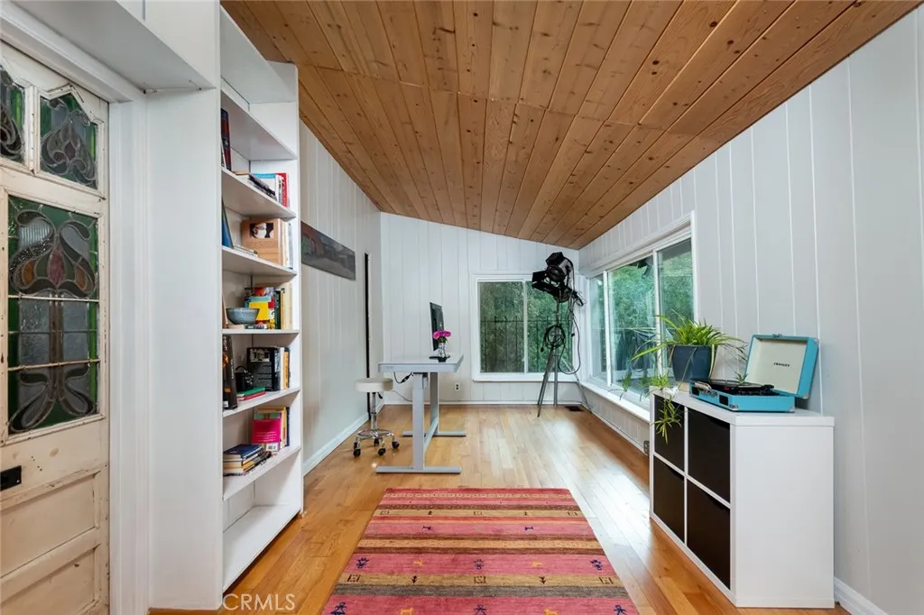 This charming home, nestled in Chevy Chase Canyon, offers a peaceful retreat with an open concept living area that highlights lovely canyon views. The spacious balcony invites you to relax and enjoy the tranquil surroundings, while inside, you'll find two bedrooms, two bathrooms, and a dedicated office for work or study. An arched gateway welcomes you to this unique, non-cookie-cutter home, which stands out for its individual character and serene setting. If you are seeking privacy and a relaxing retreat this is the home for you.