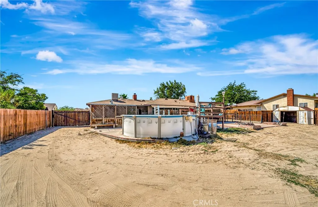 Pride of ownership is apparent as this lovely single story home is being sold by its original owner and offering over 1,100 sq. ft. of comfortable living space!! Inside you'll find 3 spacious bedrooms with the master having its own en suite, 2 full baths, a beautifully updated kitchen with pretty gray cabinetry, granite counters with tile accents, upgraded stainless steel appliances, and a charming dining room area!! Newer dual pane windows throughout with unique ceramic tile floors and wood flooring in one of the bedrooms complemented by gorgeous new fresh interior and exterior paint!! You are sure to love the real brick wood burning fireplace too for those cool winter evenings!! There is also central air/central heating along with a window evaporative cooler to save money in the summer!! The property sits on nearly 30,000 sq. ft. of flat, usable land zoned for horses tremendous curb appeal with a fully fenced wrought iron privacy fence with gate in the front yard and courtyard area along with fully fenced chain link and cross-fencing in the backyard!! The front yard boasts mature landscaping, grassy areas, and palms, while the backyard features a covered patio, storage sheds, and plenty of space for horses!! An above-ground pool with pump and filter provides the perfect spot to relax, while the 2-car garage with laundry area adds everyday convenience!! This home truly offers it all comfort, charm, and endless possibilities on a rare oversized lot!! Hurry to go see this special home today before it is sold!!