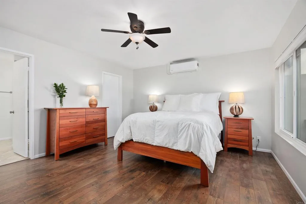Must-See Opportunity! Welcome to one of the LARGEST DETACHED HOMES & END UNIT in the highly sought-after Oceana East 1 neighborhood. This 2 BED, 2 FULL BATH home boasts of 1347 sq.ft and one of the LARGEST LOTS at the end of the street for incredible privacy. The modern remodeled residence features a detached 2 CAR GARAGE complete with a utility sink for added functionality. Inside, the open floor plan offers a spacious kitchen which features custom cabinetry, quartz countertops and a large island for entertaining. The open floor plan is enhanced by beautiful wood flooring, and tasteful upgrades throughout. Perfect for entertaining family & friends. The primary bedroom suite features a large, walk-in closet, offering ample storage space. Step outside to enjoy 2 private backyard patios. One off the living/dining room and a large shaded covered patio off the kitchen perfect for BBQ/outdoor entertaining, both offering outstanding mountainous views for relaxing or entertaining guests. Additional features include paid in full Solar installed in 2020 providing both air & heating, ensuring comfort year-round. Residents enjoy a low-priced HOA $420.00 fee that covers a wide range of resort-style amenities, including a pool (heated seasonally from approximately April to October), spa, & shaded cabanas. The clubhouse offers space to host private events and is equipped with a billiards table, darts, games, a TV and more. HOA dues also include water, trash, sewer & basic cable/TV. Newer washer & dryer, refrigerator, microwave & dishwasher ALLL covey with home. Don't miss this rare oppor