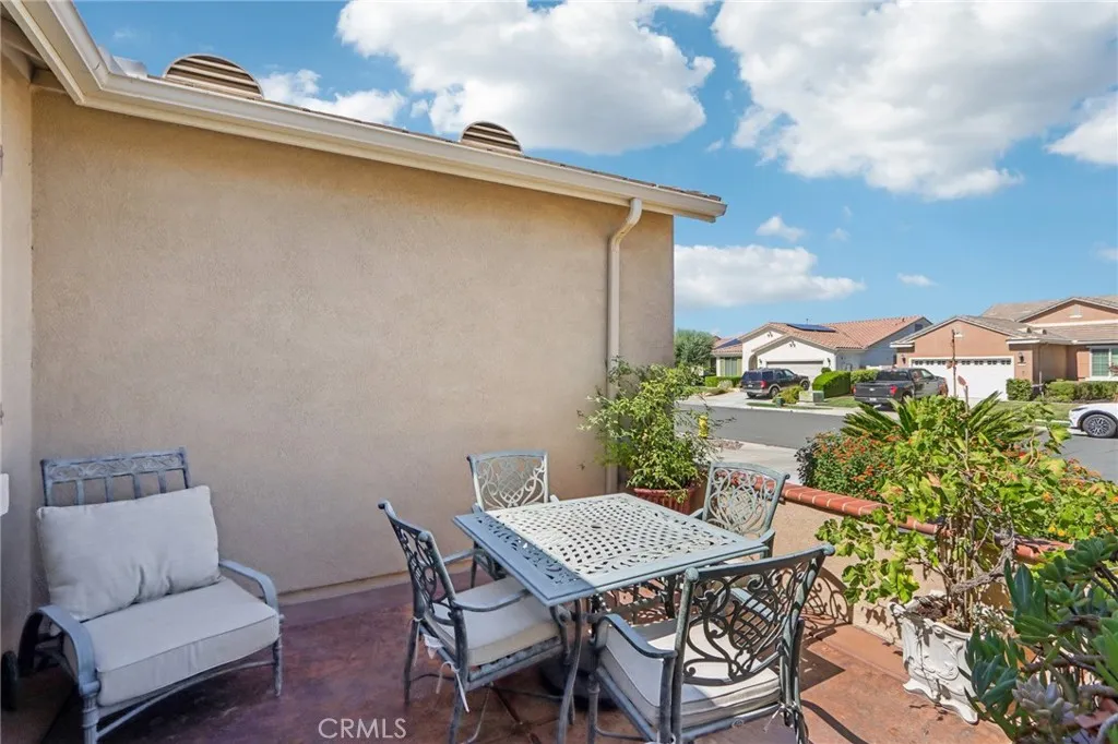 ? Gorgeous Home in Solera Diamond Valley by Del Webb 55+ Resort-Style Living ? Welcome to this stunning home in the highly sought-after Solera Diamond Valley by Del Webb, a premier 55+ gated community offering exceptional amenities and an active lifestyle. From the moment you arrive, youll be captivated by the gorgeous curb appeal, stamped concrete walkway, and beautiful front patioperfect for relaxing and enjoying the serene surroundings. Step inside to an open-concept layout designed for both comfort and entertaining. The formal living and dining rooms offer elegant spaces for gatherings, while the family room with cozy fireplace creates a warm, inviting atmosphere. The chefs kitchen features granite countertops, stainless steel appliances, a pantry, and a charming breakfast nookideal for your morning coffee. Youll love the plantation shutters throughout and thoughtful upgrades in every room. The spacious primary suite includes a large walk-in closet and a luxurious bath with granite countertops and a step-in shower. Two additional guest bedrooms share a beautifully upgraded bathroom, also with granite counters and a step-in shower. The laundry room offers convenience with extra cabinetry, storage, and a utility sink. Outside, enjoy your private oasis in the fully finished backyardcomplete with lush professional landscaping, raised planters, rain gutters, and an alumawood pergola and patio cover, perfect for year-round entertaining. Located in a central spot within the community, this home is just minutes walk from the clubhouse, where you can take advantage of resort-st