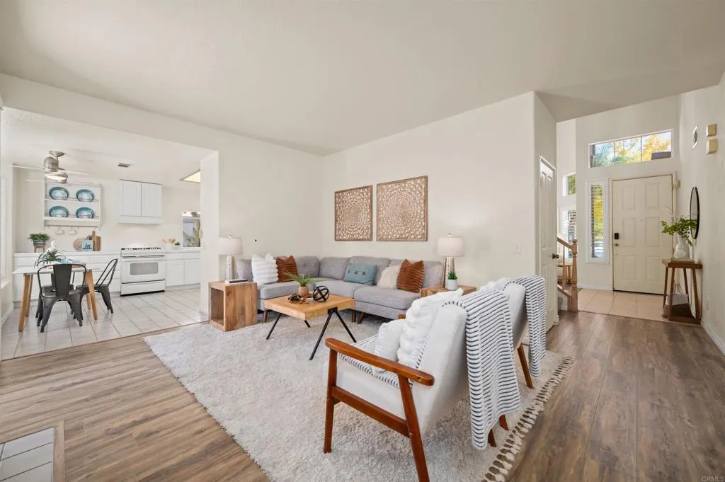 The LARGEST floorplan in the desirable gated community of Versailles. Welcome to this beautiful home which feels like RESORT style living with FULL BED and BATH downstairs and amazing location directly across the street from the pool/spa and open green-belt area/park so you get the convenience of these great amenities within steps...You will be greeted with vaulted ceilings, lots of windows so always light and bright. Luxury vinyl flooring in this living room w/dining area and elegant staircase. Large open kitchen w/white cabinets & lots of counter space, WALK-IN pantry and bay seating area for additional dining. Kitchen flows into the spacious family room with a cozy fireplace overlooking your backyard. Large primary suite with separate tub & shower with large size walk-in closet. All bedrooms are generous in size. This home boasts vinyl fencing and Saltillo style tile in the backyard for EZ maintenance. Walking distance to elementary, middle and high schools. This wonderful home is close to shops, restaurants, parks, breweries, and the Frontwave Arena home to the San Diego Clippers. Just a quick (4 mile) drive to downtown Oceanside with resorts, restaurants, Harbor, Oceanside Pier and SANDY BEACHES.