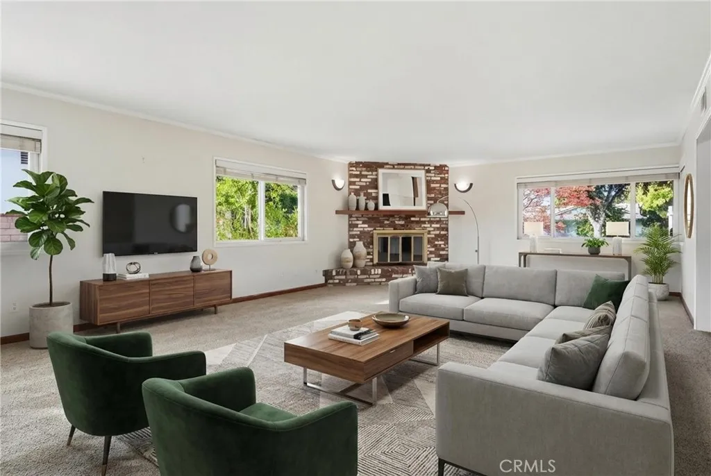 MID-CENTURY RANCH "HIGHLANDS" Welcome to this spacious single-story home offering timeless curb appeal, classic brick accents, and a warm mid-century feel. Set behind mature landscaping and a brick-lined walkway, this home blends original character with a highly functional layout designed for comfort and everyday living. Featuring approximately 2,618 sq ft, this home offers 5 bedrooms + 3.5 bathrooms + office with a desirable split-bedroom floor planideal for families, guests, or multi-generational living. Two bedrooms are located on one side of the home and two on the other, each connected by Jack-and-Jill bathrooms, creating smart separation while keeping the layout practical and connected. The private primary suite includes an en-suite bathroom and sliding door to patio. At the heart of the home, enjoy a generous living room filled with natural light and anchored by a classic brick fireplace, perfect for gatherings or relaxing nights in. The kitchen offers abundant of custom wood cabinetry, clean counters, built-in shelving and a large oven and cooktop, making it a true central hub for entertaining and everyday meals. French doors and wide windows enhance the indoor/outdoor flow and connect beautifully to the backyard. Additional highlights include a long driveway with excellent parking flexibility and potential Jr. ADU opportunity (buyer to verify). With space, versatility, and classic charm, this is a rare opportunity to own a home that offers both lifestyle and long-term value.