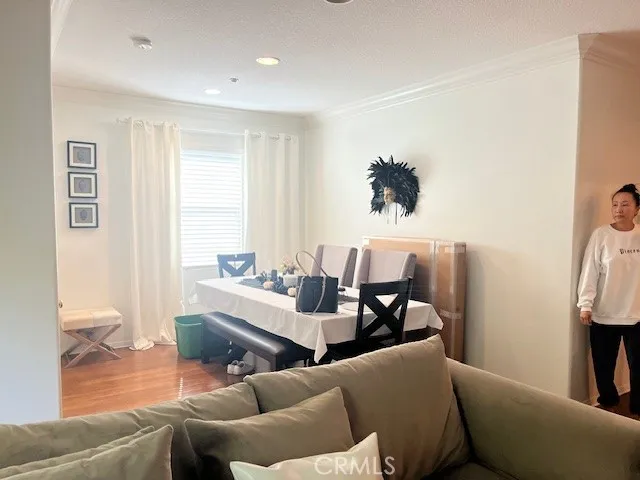 Nestled in the trees with a private front balcony in the prestigious community of Ambridge in Quail Hill is where you will find this well located, highly upgraded condo. Features include high end wood laminated floors, crown molding, granite countertop in kitchen, recessed dimmable lighting in every room, walk-in closet, dual sinks in master. All this and an oversized 2 car side-by-side garage with huge storage area below the carriage style condo. Fabulous association amenities include community pool, spa and gym facilities. Easy access to both 5, 405 and 133 freeways and nearby shopping including the spectrum. Full size washer and dryer and refrigerator are included.