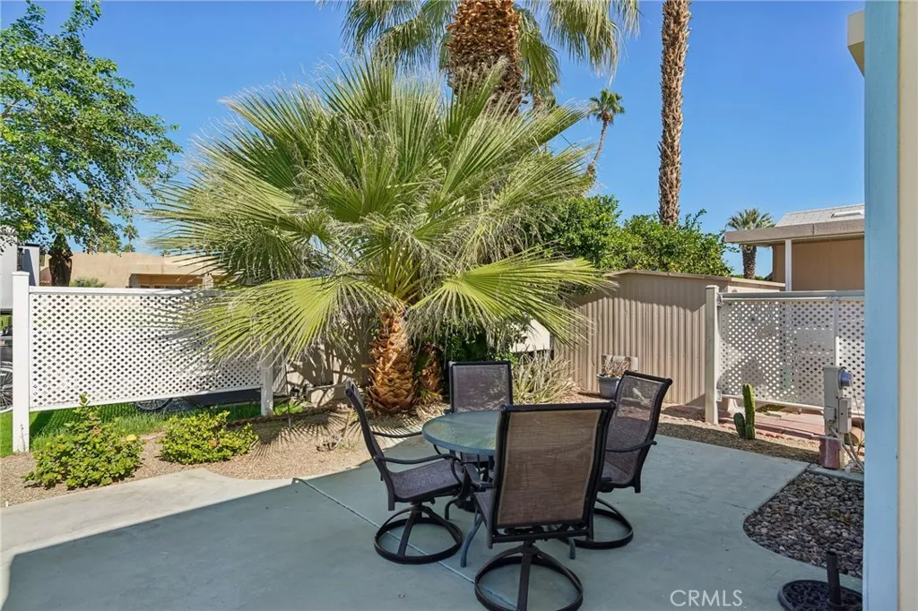 Winter is better here. This wonderful park model is ready for a new owner. This cute, very clean unit is awaiting your touches to update this well kept place to make it your own. Situated on a small loop near the clubhouse, this allows you to be close to the activities but have your privacy, too. Furniture, both indoor and outdoor is included as well as nearly all the housewares you will need for your vacation get-a-way. Vaulted ceilings bring in more light. Blinds throughout help to manage all the light that shines in. Floors have been updated and there are ceiling fans. The kitchen is well appointed with stovetop, oven, microwave and dishwasher. The shed has a washer & dryer and lots of room for extra storage. Act fast, as this unit is price to sell. Make this your vacation haven or even a rental investment. Located next to the Polo fields for close proximity to the festivals and surrounding hot spots. Desert Aire is a 55 and better community that is pet free. Community offers too many activities to list including pickleball, putting green, pitch & putt field, shuffleboard and more. Don't wait, call now.