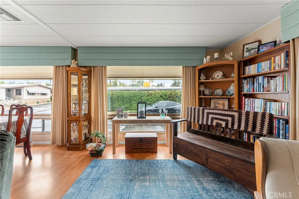 Fantastic Location in Upper Yucaipa. Hidden Village Mobile Home Estates, 55+ Senior Community. Super clean! Beautiful & Spacious 2 bedroom, with expando giving added space for office, gym, craft room or whatever your heart desires. Almost all newer dual pane windows throughout. Tons of natural light with views of the San Bernardino mountains. Impeccably maintained inside and out, with earthquake stabilizers installed and recently inspected approx July 2025. Updated Kitchen granite countertops, Newer slider, updated flooring in kitchen and living area all on a large corner lot.
