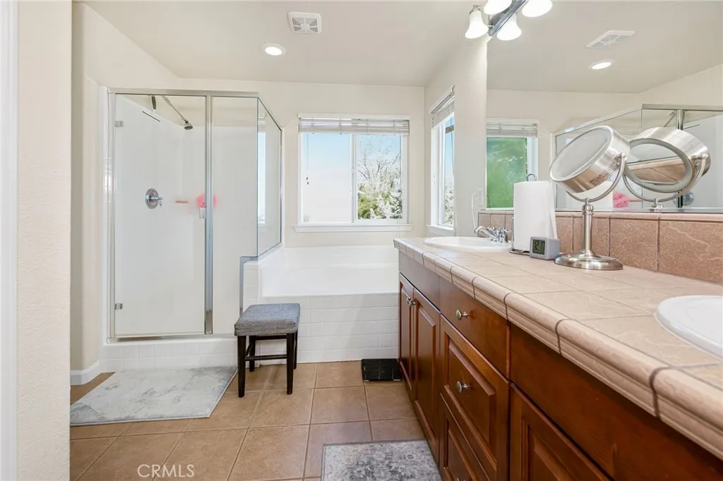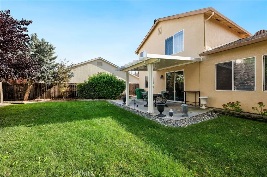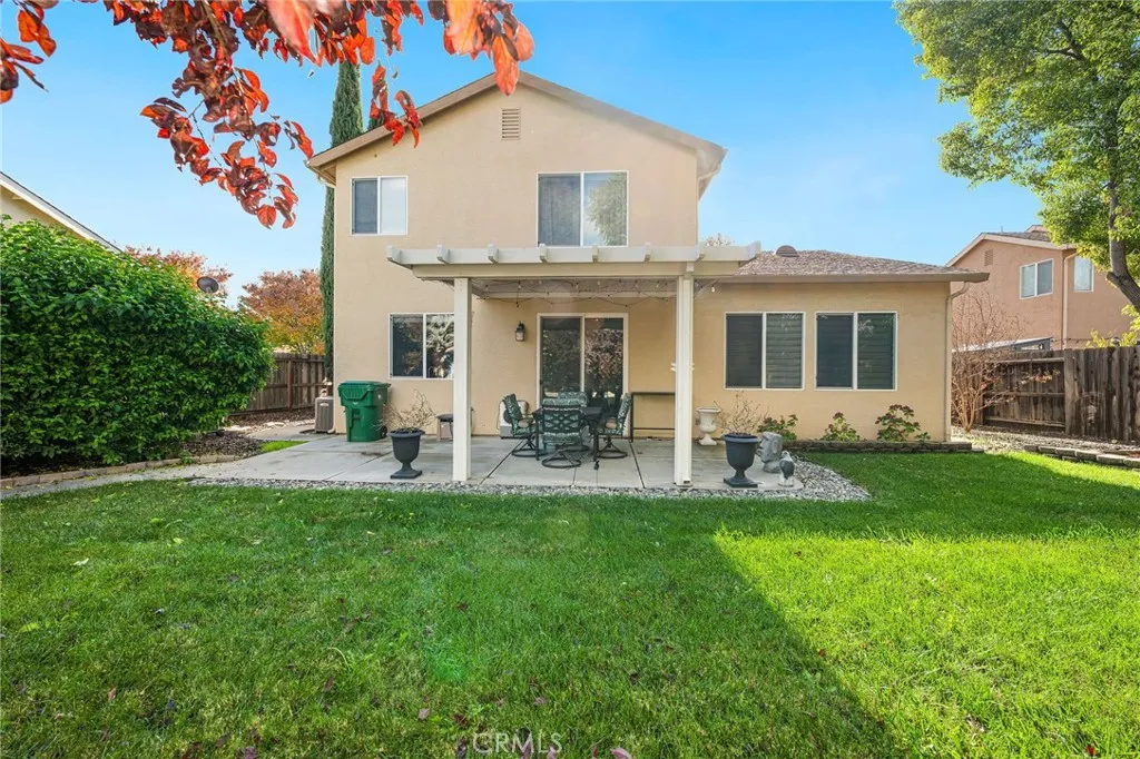 Motivated Seller! Owned Solar, RV Parking, Beautiful new Covered Patio and More!! Welcome to this well-cared-for, gently lived-in home with an open layout that feels immediately welcoming. High ceilings, many windows, and solid-surface flooring throughout the entire downstairs creating a seamless flow from the living room to the family room, dining area, and spacious kitchen. The family room offers a cozy gas fireplace, while the kitchen provides newer appliances, a pantry, and an extraordinary amount of cabinets & countertop space for cooking and gathering. Large windows overlook the landscaped backyard, complete with an oversized patio, new alumiweld patio cover, and a large storage shed, an ideal space for relaxing or entertaining. The main level also includes a convenient laundry room, guest half bath, luxurious blinds, and many updated fixtures, lights, and ceiling fans. Upstairs, a wide staircase leads to the comfortable bedrooms and 2 additional bathrooms, including a primary suite with a large walk-in closet, soaking tub, spacious shower, and dual sinks. With an HVAC replaced about four years ago, thoughtful updates throughout, and a welcoming front porch entry, this move-in-ready home is nestled in a lovely neighborhood that even offers its own private park. You will love the extra features like owned water softner and automatic timed sprinkler system to symplify your lifestyle. It is truly a place you will look forward to coming home to. Sq ft lot size & yr built from assessors records, buyer to verify all information to their satisfaction
