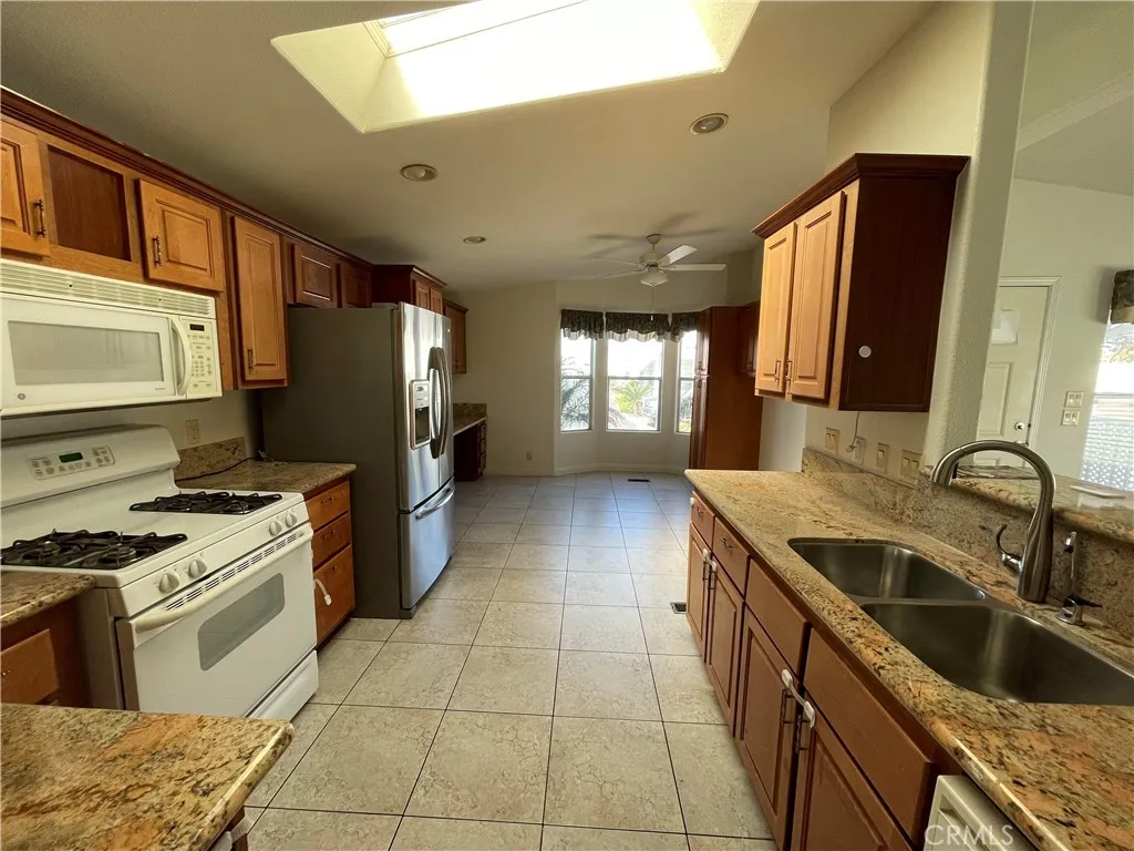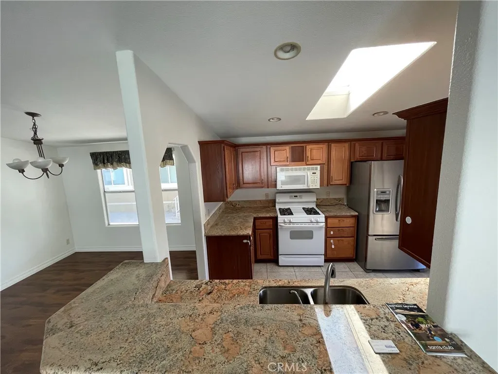 HUGE PRICE REDUCTION - Location, Location, Location! This is a Dream come True with Fabulous 3 Bedrooms, 2 Bathrooms CAVCO Manufactured Home. Live like a King in this 13' 33" X 60' approximate Home with 1,600 sqft space. It comes with Appliances; Cozy Front Porch with Tiles; Welcoming Spacious Living Room with Chandlier & Wood Flooring; Upgraded Kitchen with Granite Counter Tops, Stainless Steel Sink, Wood Cabinets & Tiles; Dining Area to fit a Large Family; Convenient Full Bathroom; Separate Washer & Dryer Room with Storage Space; Two Comfortable Bedrooms along with a Huge Master Bedroom; Master Bathroom with two sinks for Him & Her and a separate Water Closet. Carport to hold 3 cars; comes with a Convenient Storge Unit to hold your extra supplies; Central A-C & Heating; & Gas Water Heater. Area around the home is of Concrete for convenience. Space rent is only $1,725/month. Very close to Pool, Spa, Club House, & Guest parking. Sold as is.