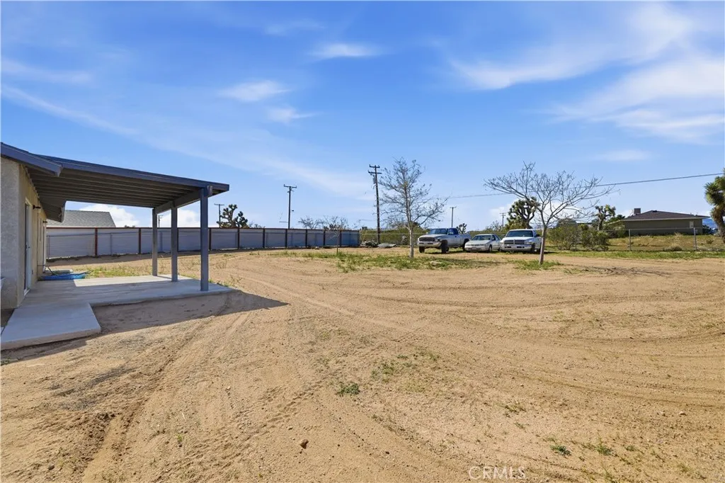 Single-story 3-bedroom, 2-bath home situated on a large 21,000+ sq ft lot in Yucca Valley. Offering approximately 1,207 sq ft of living space, this property features a functional floor plan with ample space for entertaining, attached 2-car garage, and a large well maintained yard. This home is equipped with solar panels, adding long-term energy savings. The expansive lot provides ample space for RV parking, storage, gardening, workshop potential, or future improvements. The rear yard is fully fenced, and front yard includes a mature shade tree and outdoor seating area. This Home presents a great opportunity for buyers looking to find their piece of heaven in a growing desert community. Conveniently located near shopping, dining, and Joshua tree national Park.