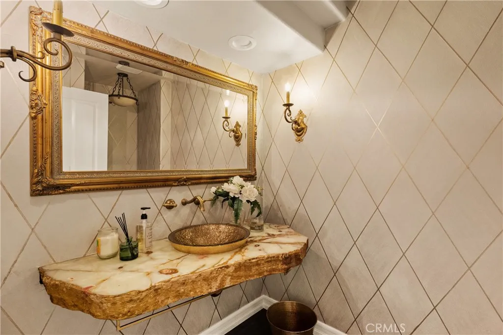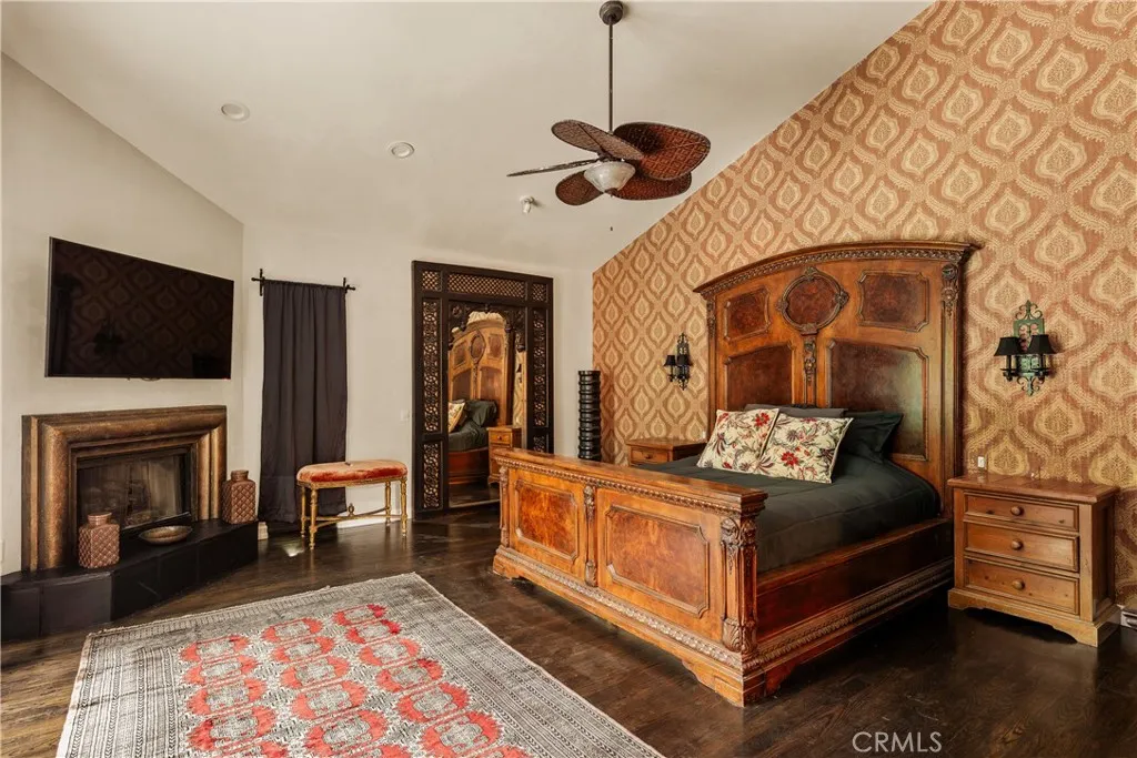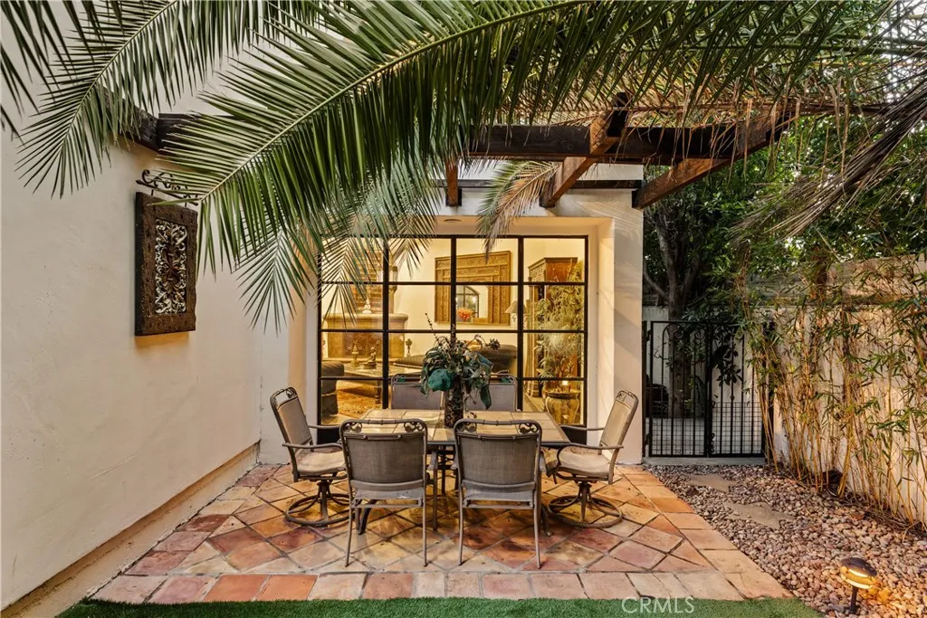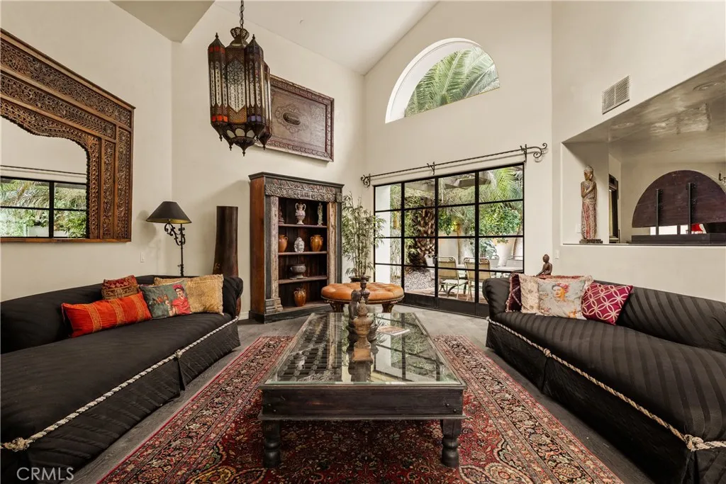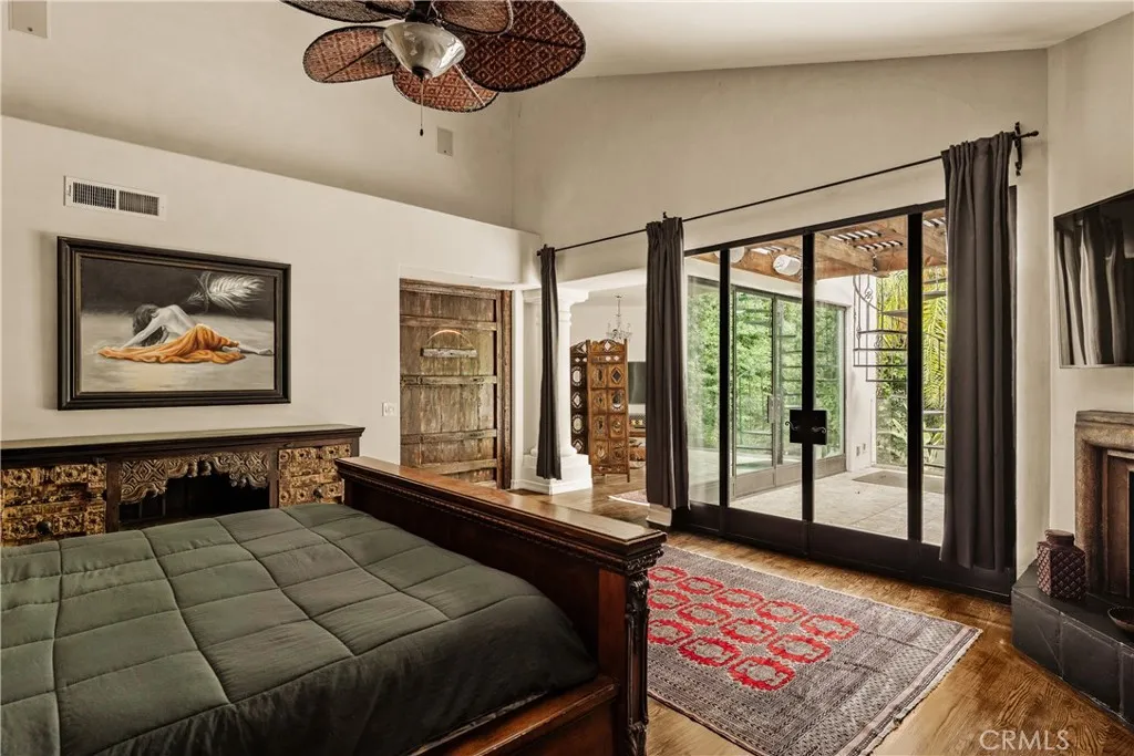 Tucked away behind gates just off Ventura Boulevard, this Mediterranean-style retreat offers premier Encino living with unmatched privacy and amenities. A long, gated circular driveway leads to a stately motor court and three-car garage, framed by lush landscaping and mature trees that shield the home from the street. Step through custom wrought iron doors into a dramatic foyer, where soaring ceilings, a sweeping staircase, and elegant tile floors set the tone. The main level features a grand family room with an ornate fireplace, a formal dining room, a sleek bar, a game room, and a glass-enclosed sunroom with a beverage station. The spacious kitchen is designed for gathering, while a separate maids suite with a private bath and laundry area provides convenience and flexibility. Upstairs, all bedrooms are thoughtfully arranged on the same level. The magnificent primary suite spans four rooms, offering a fireplace-warmed bedroom, sitting room, dressing room, and a spa-inspired bathroom with water closet. A private elevator ensures easy access. Each bedroom showcases treetop views through expansive windows, while a generous outdoor lounge connects to a rooftop deck via spiral staircaseperfect for sunset entertaining. The resort-style grounds include a sparkling pool and spa, outdoor dining area, and built-in barbeque, all enhanced by a Sonos sound system for seamless entertaining. With 5 bedrooms, 4 bathrooms, and over a third of an acre of serene grounds, this residence delivers both elegance and comfort in an unbeatable location close to freeways, restaurants, and shopping.