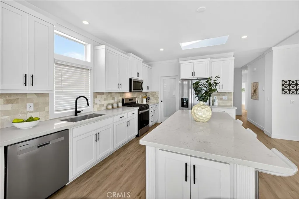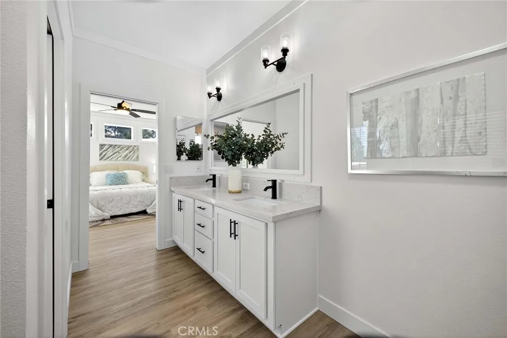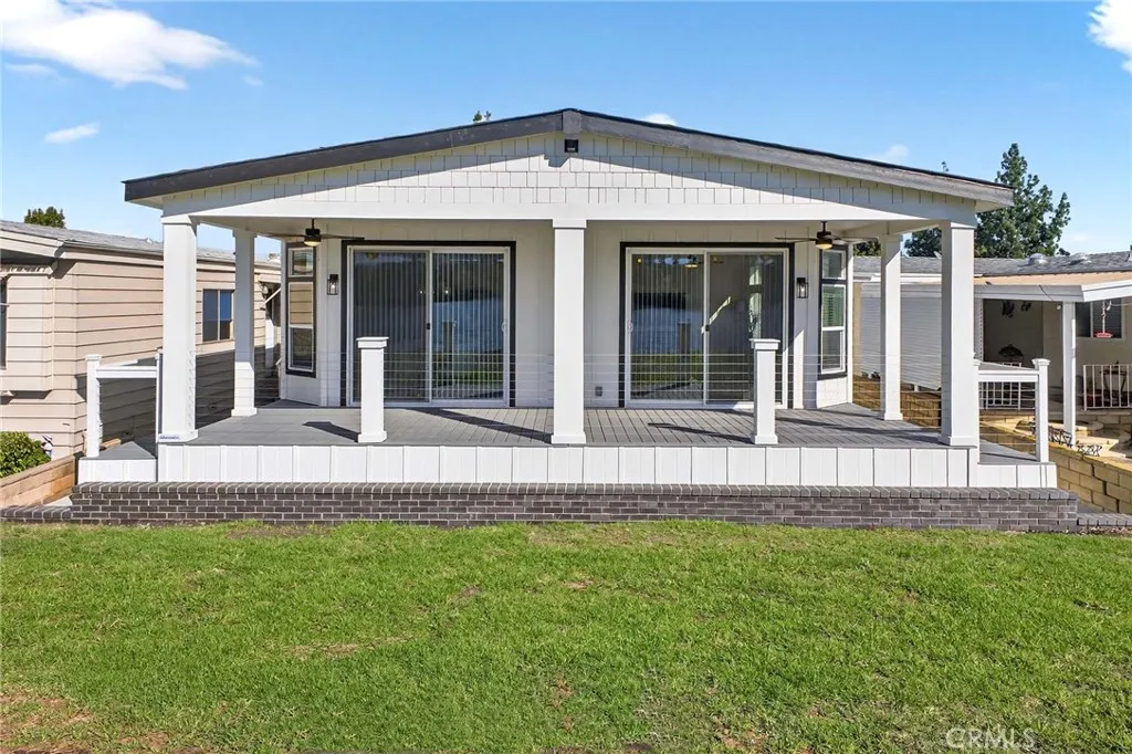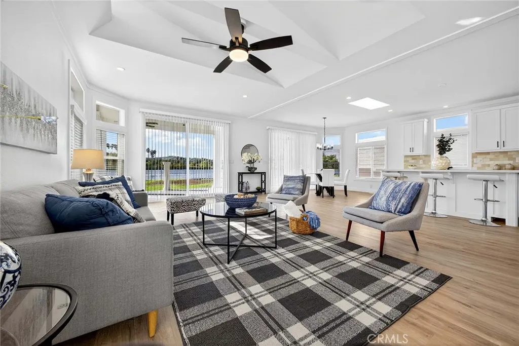 Experience lakeside living at its finest in the serene 55+ community of Lake Los Serranos-where every day feels like a vacation. Enjoy peaceful mornings on the oversized porch overlooking the water. This bright and open floor plan offers an abundance of natural light from skylights and large windows throughout the home. The chef-ready kitchen features a quartz island, stainless steel appliances, and a walk-in pantry. The generous primary suite includes a walk-in closet, dual vanities, and a walk-in shower. Two additional guest bedrooms and a utility room with side-by-side laundry hookups provide extra comfort and convenience. Additional highlights include a covered carport with easy parking and access to active community amenities such as a pool, spa, and scenic walking paths.