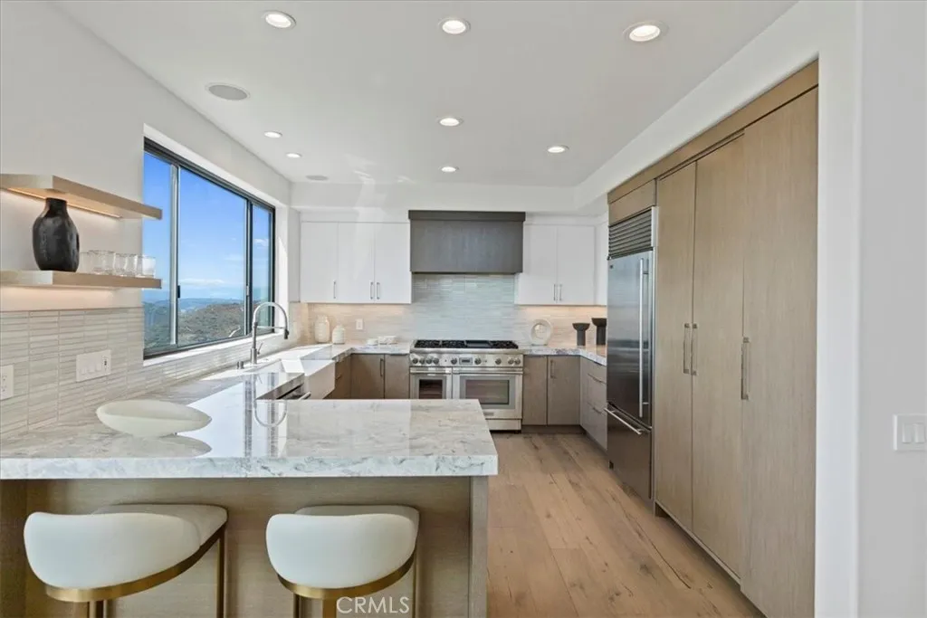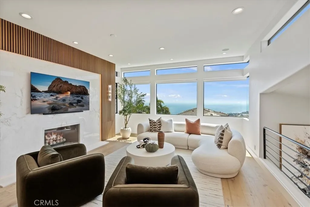 Ultra-Luxury Feature List Property Overview-- Iconic Skyline Drive address with commanding ocean, canyon & Catalina Island vistas Fully reimagined luxury residence completed 2023 4 Bedrooms | 4 Bathrooms of refined coastal living Nearly every room designed to showcase panoramic view corridors NEW premium Heating & Air system (2024) Architectural & Interior Luxury-- Frameless picture windows capturing endless ocean horizons Provenza Old World hardwood floors for an elevated, timeless aesthetic Onyx Glass windows offering privacy, clarity & elegance Sonos whole-home audio for seamless, high-end sound throughout Multiple view terraces & balconies ideal for sunset gatherings Chefs Designer Kitchen-- Imported Bardiglio Versilis marble countertops striking & sophisticated Custom stained rift-oak cabinetry with luxury hardware Dramatic Sessemo Raku handcrafted tile backsplash 24" Thermador gas range w/ double convection ovens Thermador dishwasher & Sharp microwave drawer Custom beverage center in dining area perfect for entertaining in style Main-Level Primary Retreat-- Two generously sized walk-in closets with luxury finishes Spa-inspired Terrazzo-tiled shower with dual multifunction shower heads Expansive windows framing breathtaking ocean & canyon views Steps from the elegant powder room and view-filled main living area Lower-Level Private Quarters-- Three spacious, light-filled bedrooms with designer surfaces Junior suite with private ocean-view balcony & frameless picture window Ensuite bath wrapped in floor-to-ceiling tile with floating vanity Engineering & Structural Exc
