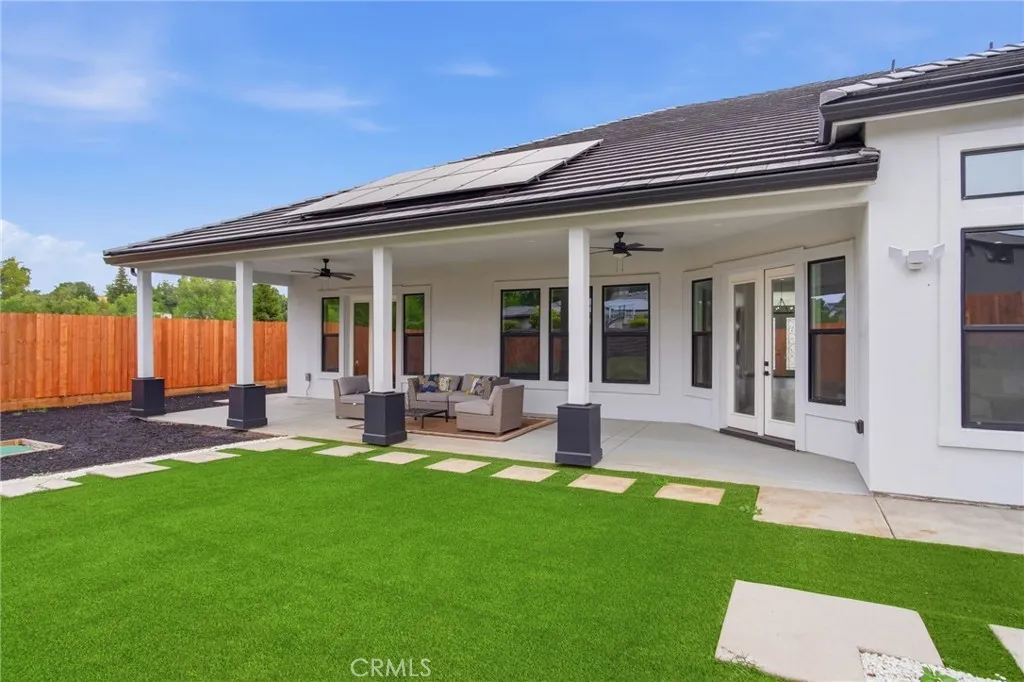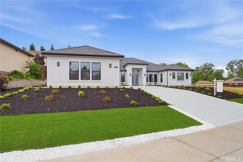 Experience refined living in this stunning new-build home nestled in one of Oakdale's most desirable neighborhoods. Set on a generous 0.46-acre lot, this residence offers exceptional craftsmanship, spacious design, and contemporary elegance throughout. Spanning 4528 sq ft, the home showcases 12-foot ceilings and 9-foot doors, creating an airy, open ambiance filled with natural light. The thoughtful floor plan includes a junior suite, a dedicated office, and a Jack & Jill bathroom connecting two additional bedrooms perfect for both family living and guest accommodations. Entertain with ease in the expansive great room and gourmet kitchen, or enjoy the comfort of a well-appointed half bath for guests. A laundry/mud room adds convenience and functionality to the home's practical design. Outside, the property is equipped with sprinkler systems, a retaining wall, and room to customize your outdoor living space ideal for future pool, garden, or patio plans. Energy efficiency and comfort are top priorities with two 4-ton HVAC units and eight owned solar panels. A contemporary color scheme adds a sleek modern aesthetic and curb appeal. This Oakdale gem blends modern design with the peaceful setting of the Cowboy Capital of the World, offering both space and sophistication.
