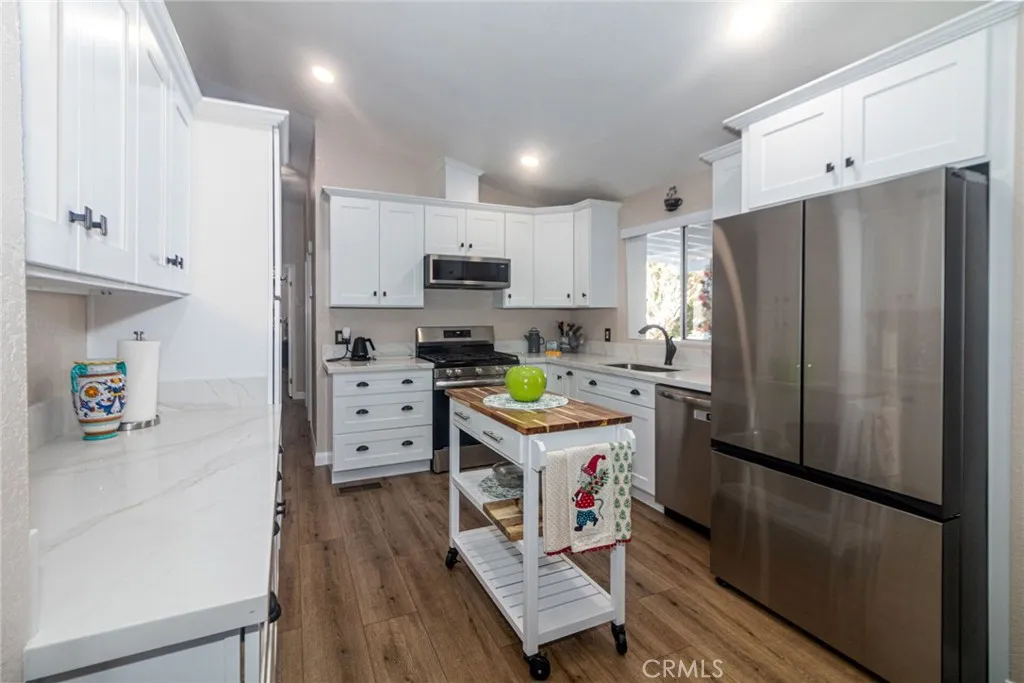 WELCOME TO THE DESIRABLE MOUNTAIN SPRINGS 55+ community. ADDITIONAL OCCUPANTS 18 & OLDER ALLOWED. COMPLETELY UPDATED HOME is truly move-in ready, home features high-end upgrades. This is LOW MAINTANANCE LIVING at its finest! FRESH & MODERN AESTHETIC NEW INTERIOR & EXTERIOR BEHR PAINT, and the durable WATERPROOF WOOD LAMINATE FLOORING installed throughout. GOURMET KITCHEN has been completely renovated with NEW SHAKER STYLE CABINETS, top-of-the-line QUARTZ COIUNTER TOPS, RECESSED LIGHTING, newer STAINLESS-STEEL APPLIANCES. Upgraded lighting and CHANDELLIER FANS in dining room, office, and primary bedroom. Both bathrooms have been upgraded, the guest bathroom is completely remodeled, including some copper plumbing pipes, and the principal bathroom features a new vanity and toilet. Outside, you'll find a private oasis designed for EASY CARE. Front and back yards are beautifully updated with SYNTHETIC GRASS, and the property features a new vinyl fence and gate. Enjoy the covered patio, which boasts a brand-newer roof. The yard is a GARDENER'S DELIGHT, complete with a DRIPPING SYSTEM and a variety of established trees and flowers. The front yard includes rose trees, a semi-dwarf lemon tree, and a crepe myrtle tree. The backyard features fruit trees like KEY LIME, PEACH, and KUMQUAT, alongside a gorgeous bougainvillea. Finishing the exterior upgrades are NEW GARAGE DOOR AND MOTOR offering peace of mind. MOUNTAIN SPRINS IS A PREMIERE 55+ community offering features like, swimming pool, and recreational facilities for an active, social lifestyle. This is the perfect retreat for buye