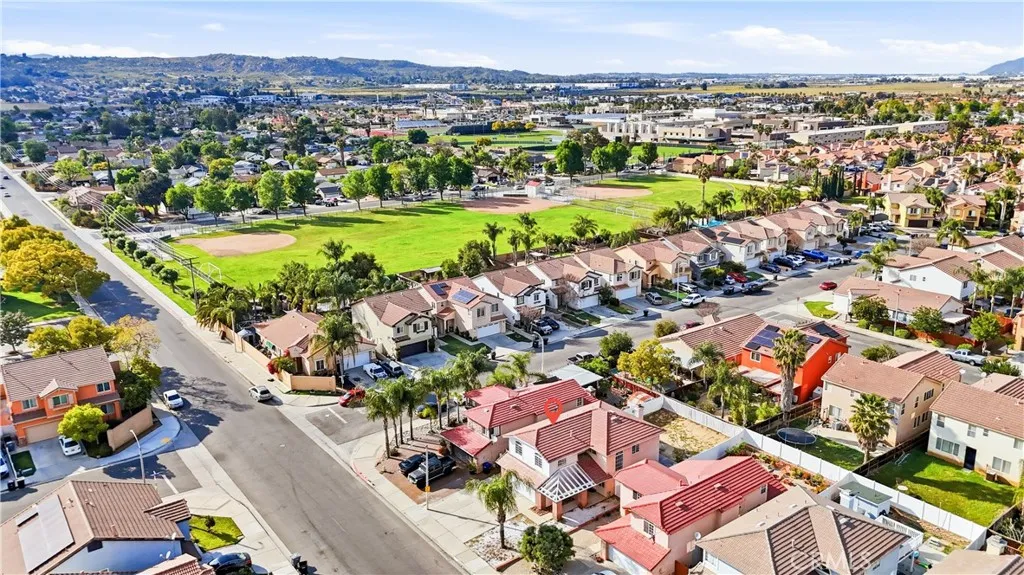 BACK ON MARKET! Buyer refused to perform. Welcome to this spacious 4-bedroom, 2.5-bath home in a quiet Perris neighborhood with No HOA and low special assessments. Featuring nearly 2,000 sq ft of open living space, and a large flat backyard with endless potential, this move-in ready residence offers an updated interior, fresh finishes, and a large blank-slate backyard ready for your vision. The main floor features new flooring throughout, abundant natural light, a cozy fireplace, and an expansive living area designed for flexible use. The kitchen includes ample cabinet storage, a stainless-steel range, recessed lighting, and a large window overlooking the backyard. All 4 bedrooms are located upstairs for added privacy, including a generous primary suite. Additional features include an attached 2-car garage, indoor laundry room with storage, updated fixtures, and fresh interior paint. The oversized backyard offers room for outdoor entertaining, garden beds, play area, ADU potential (buyer to verify), or future customization. Located conveniently near shopping, schools, parks, and quick 215 freeway access. FHA, VA, and government-backed financing welcome! Your future home awaits!