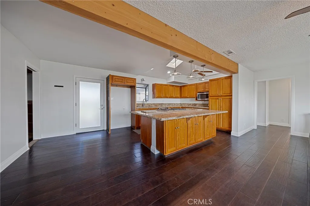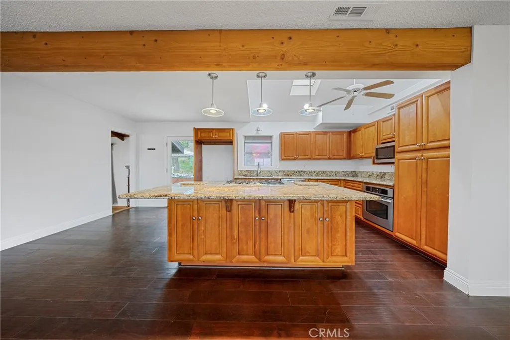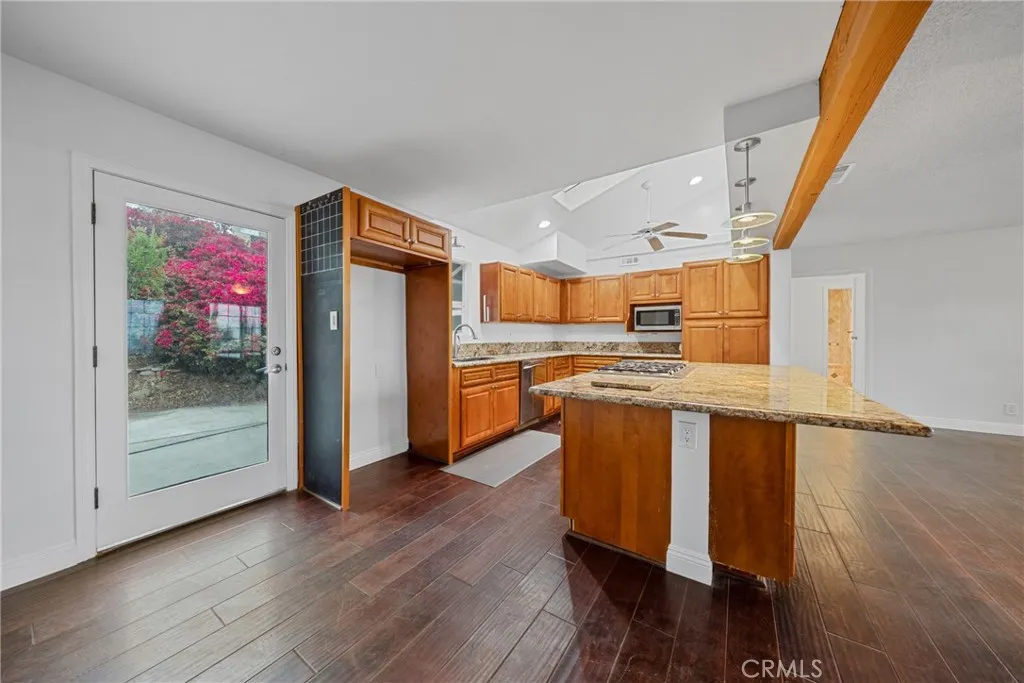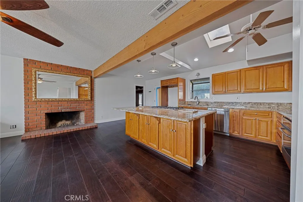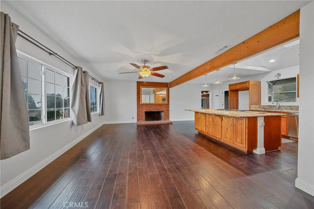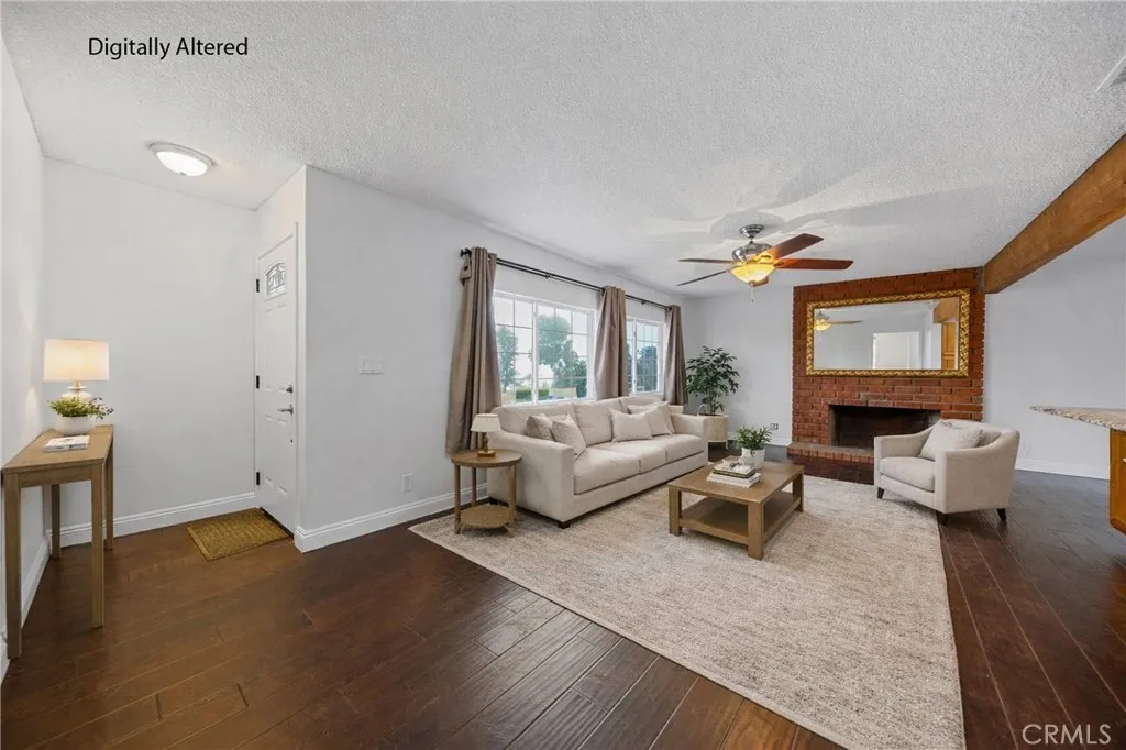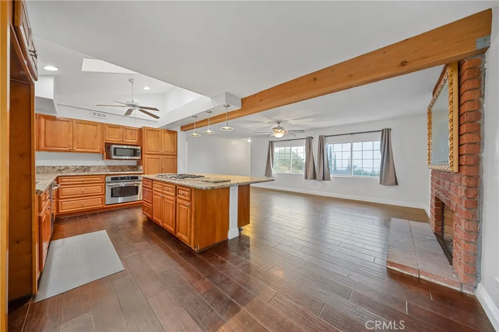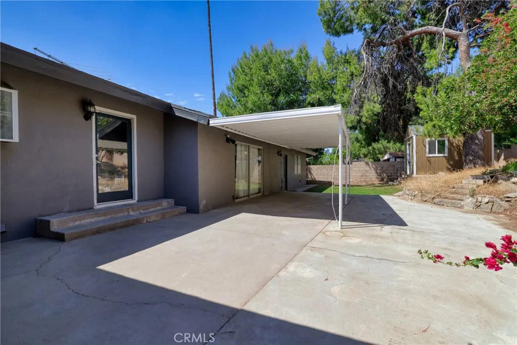 Welcome to this beautifully maintained and move in ready single story home tucked away on a quiet cul de sac in Jurupa Valley. Offering 3 bedrooms, 2 bathrooms and 1,855 square feet of comfortable living space on a large 10,019 sq ft lot. Originally built in 1960, the home has been thoughtfully updated over the last decade, including all new paint on the interior and exterior, blending mid century character with modern convenience. From the moment you arrive, you'll notice the excellent curb appeal and pride of ownership. Step inside to find wood flooring throughout and a bright, open layout thats perfect for both daily living and entertaining. The kitchen has a vaulted ceiling with a skylight, granite countertops, and lots of cabinetry ideal for any home chef. The adjacent living and family rooms each feature a large cozy brick fireplace, creating a warm ambiance for gatherings or relaxing evenings at home. Both bathrooms have been stylishly updated, with the hall bathroom also enhanced by a skylight that fills the space with natural light. Energy efficient dual pane windows, central heating & air, and a solar panel system keeps the interior comfortable year-round while helping to reduce utility costs. Indoor laundry with storage and lots of counter space adds everyday convenience. Outside, your own private backyard oasis awaits with artificial grass throughout the yard. The large backyard is ideal for entertaining, featuring a large covered patio for weekend barbecues and an above-ground hot tub for relaxing under the stars. Enjoy panoramic city views from the front yard,