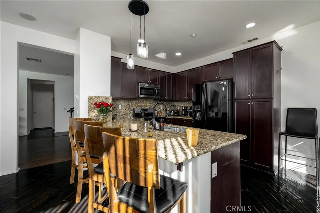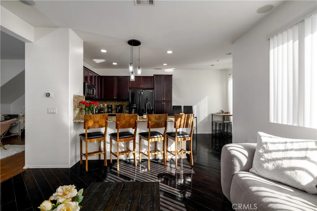 FHA/VA Approved! 3 BED, 2.5 BATH CONDO. Featuring PRIVATE ENTRY and an ATTACHED 2-CAR GARAGE, creating the feel of a standalone residence. SOLAR and BACK-UP BATTERY perfect for Electric Vehicles! CLOSE to FREEWAY, SHOPPING and SCHOOLS. The main level welcomes you with a formal entry and living space, highlighted by wood flooring throughout. Just off the kitchen, the spacious family room is perfect for relaxing or entertaining. The kitchen is thoughtfully designed with granite countertops, rich dark cabinetry, and ample storage, while abundant natural light pours in from the backyard, creating a bright and inviting atmosphere. Main level also includes laundry room and half bathroom with pedestal sink. Step outside to your private backyard oasis, complete with artificial turf, a concrete patio, and a gazebo included for shadeideal for outdoor dining, playtime, or unwinding after a long day. Upstairs, the primary suite offers a peaceful retreat with a private bathroom featuring dual sinks, a walk-in shower, and a walk-in closet. Down the hall, youll find two generously sized guest bedrooms and a full bathroom with a tub/shower combo, perfect for family or guests. Additional highlights include solar with a backup battery, providing excellent energy savings and efficiency. The community offers resort-style amenities, including a pool, park, and front yard maintenance covered by the HOA, making for low-maintenance living. Conveniently located just off the 215 freeway, this home is close to Costco, gas stations, Starbucks, Target, shopping, dining, and everyday essentials. Plus, h
