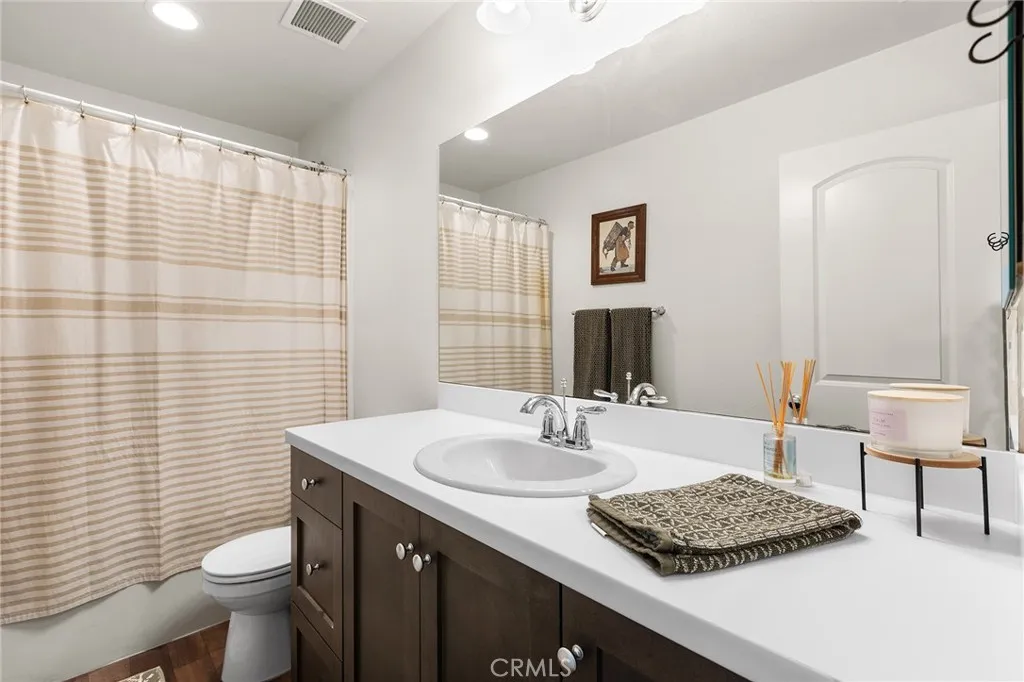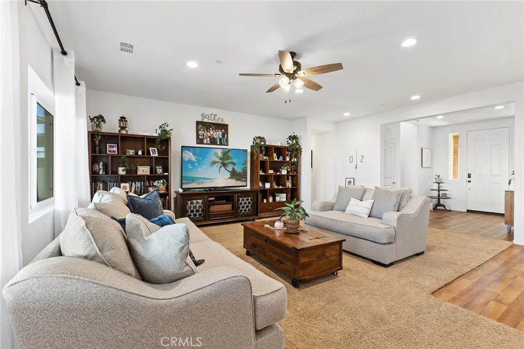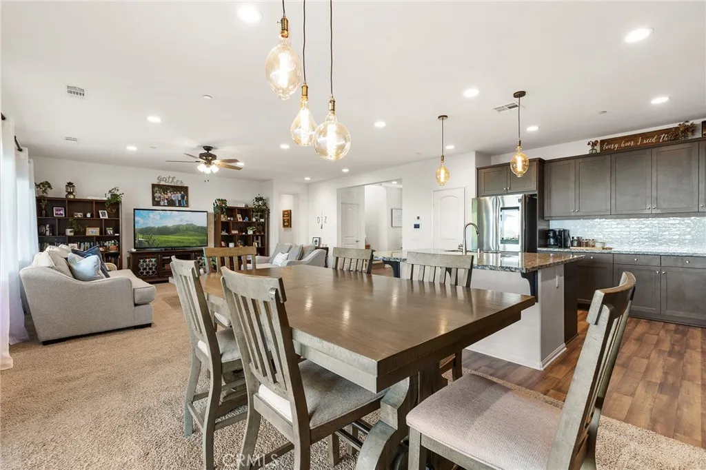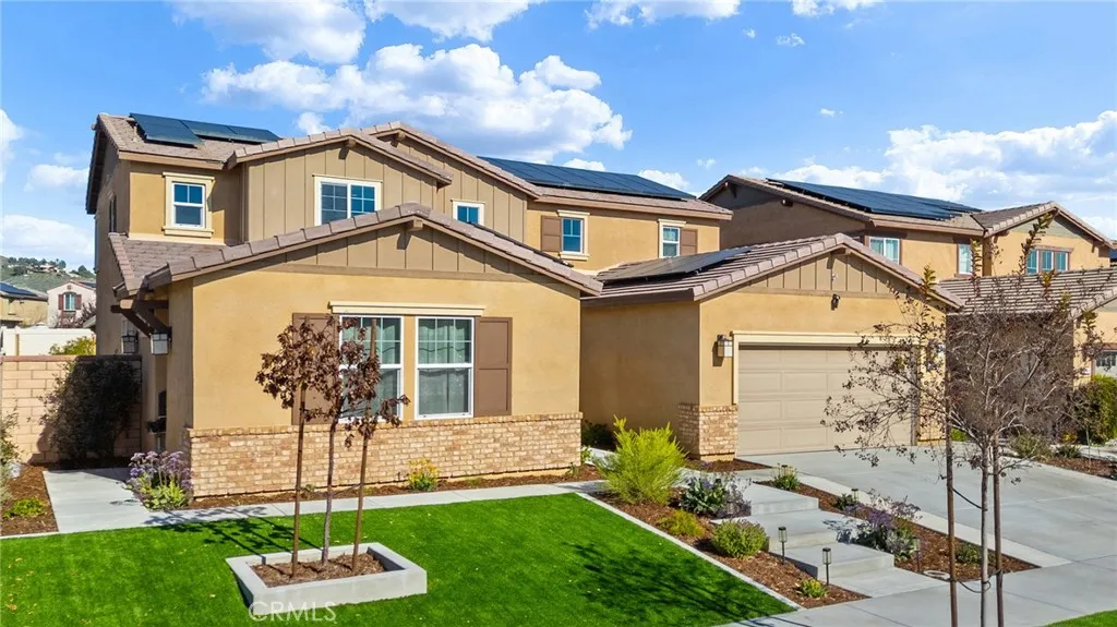 RARE ATTACHED CASITA2 HOMES IN 1! Welcome to this exceptional property in the highly sought-after Audie Murphy Ranch community, a master-planned neighborhood where family living meets modern luxury with miles of trails, parks, pools, and breathtaking mountain views. The fully independent casita offers its own bedroom, full bath, living room, kitchenette, stackable washer/dryer, private entrance, and private outdoor spaceperfect for multi-generational living, guests, or rental income. The main residence boasts 4 bedrooms and 3 baths, including a main-floor bedroom and bath for single-level convenience. The chef's kitchen showcases a massive island and flows seamlessly into an oversized family room and dining area with great backyard viewsideal for gatherings and entertaining. Upstairs, you'll discover a spacious loft, two generous secondary bedrooms, a full bath, and a stunning master suite with captivating views. The backyard transforms outdoor living with an impressive alumawood patio cover featuring integrated lighting and columns, charming bistro lights, outdoor TV, low-maintenance artificial turf, above ground metal planter boxes, and a complete outdoor kitchen equipped with refrigerator, sink, BBQ, and pizza oventruly an entertainer's paradise. The front yard impresses with professional artificial turf landscaping and custom hardscape entry. Additional highlights include a craft room located in the downstairs bedroom and bathroom area, which can easily be converted back to the third-car tandem garage space. Located in a thriving area with convenient access to shopping,