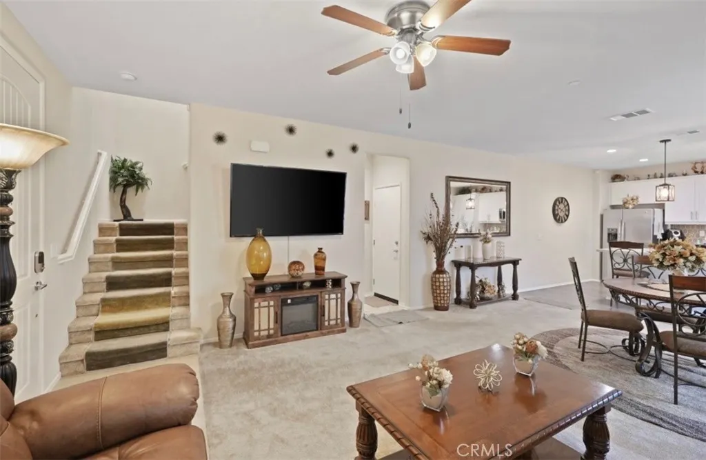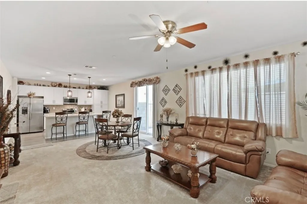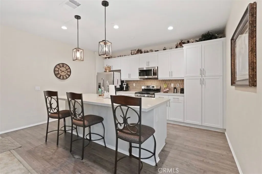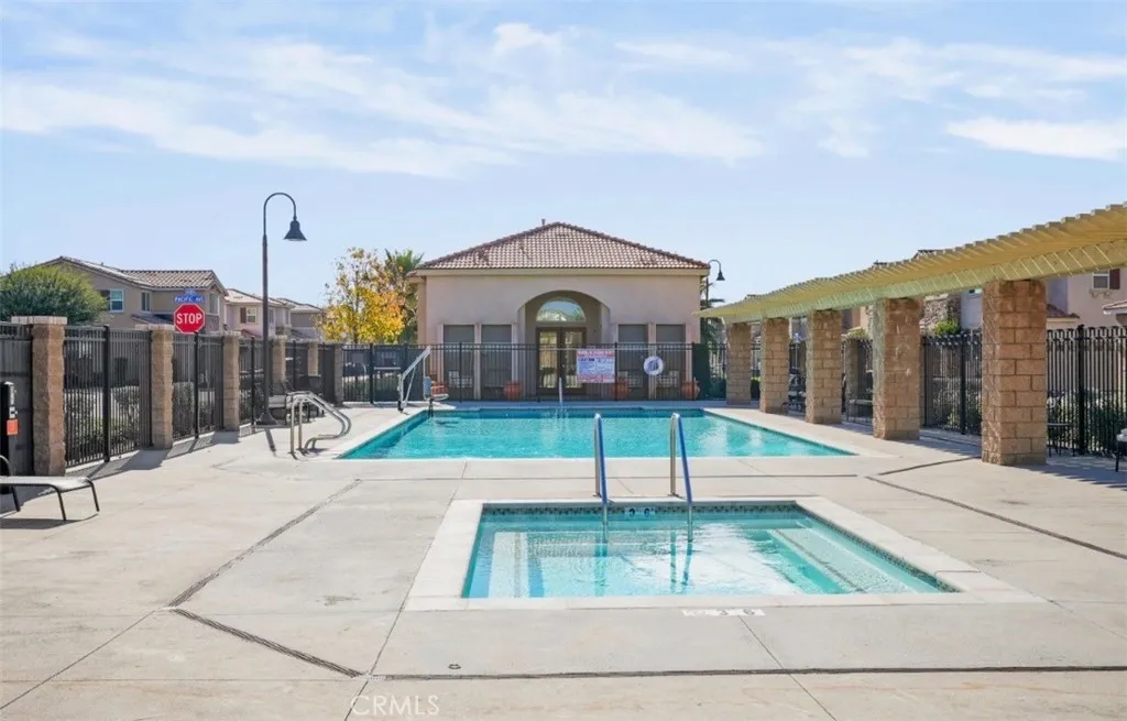 Welcome to this beautifully maintained three-bedroom, two-and-a-half bath home, built in 2022, and located in a desirable gated community in Perris. The open-concept kitchen features white cabinetry, quartz countertops, and stainless-steel appliances, seamlessly flowing into the main living areaperfect for everyday living and entertaining. The spacious primary suite offers a relaxing retreat with a walk-in shower and dual sinks. Additional highlights include an indoor laundry room, attached garage, The Quiet Cool system that cools the house without using AC amazing for Low energy efficiency, drop down water sprinkler system throughout the house. Residents enjoy resort-style community amenities, including a pool and spa, park, clubhouse, and outdoor cooking and barbecue areas. This newer home offers comfort, convenience, and a wonderful community lifestyledont miss this opportunity!