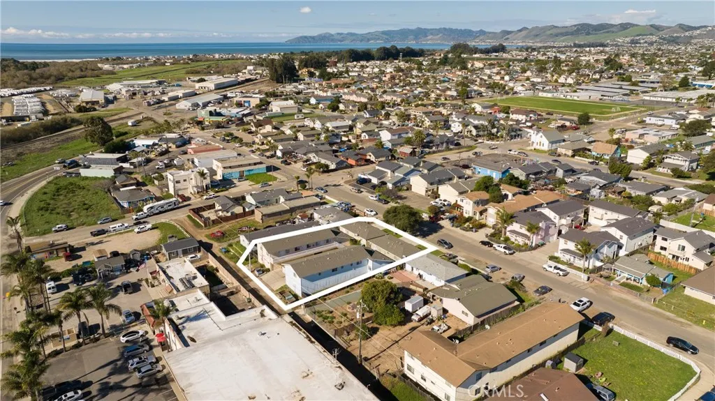 Tucked in the heart of Oceano just behind Central Market and roughly a mile from the beach, this 10-unit multifamily opportunity is comprised of four buildings across two separate lots (14,000 SF total). Each lot features a 2BD/1BA detached home with its own single-car garage and in-home laundry hookups, plus a rear apartment-over-garage units offering eight additional units total (four per side) above garage rows, with additional garages rented separately for extra income. Property operations are streamlined with separately metered units, owner-paid water/trash, plus house meters for common-area lights and two on-site coin-operated laundry rooms. Gas cooking and gas wall heaters, refrigerators provided, and a clean, practical unit mix make this a compelling coastal asset with 2025 gross income of $147,000 in a convenient, tenant-friendly location.