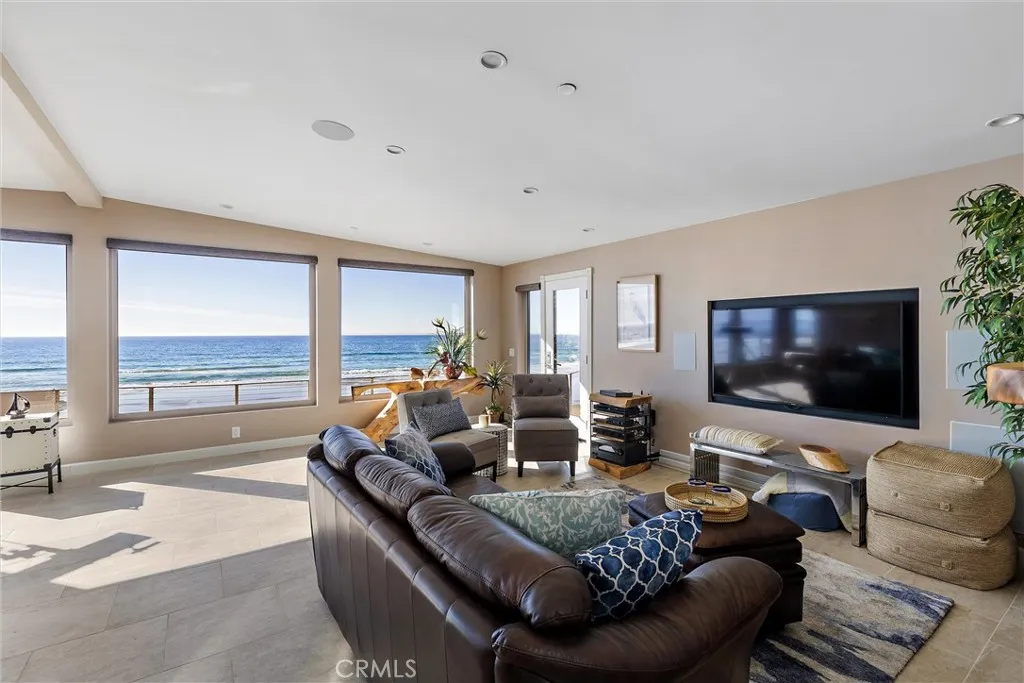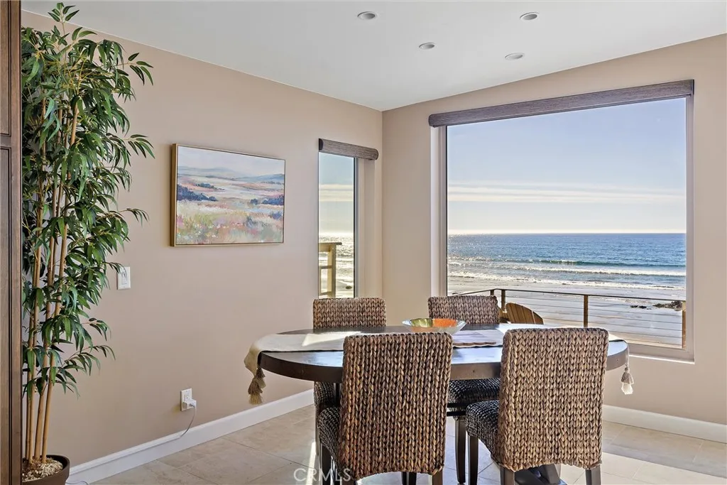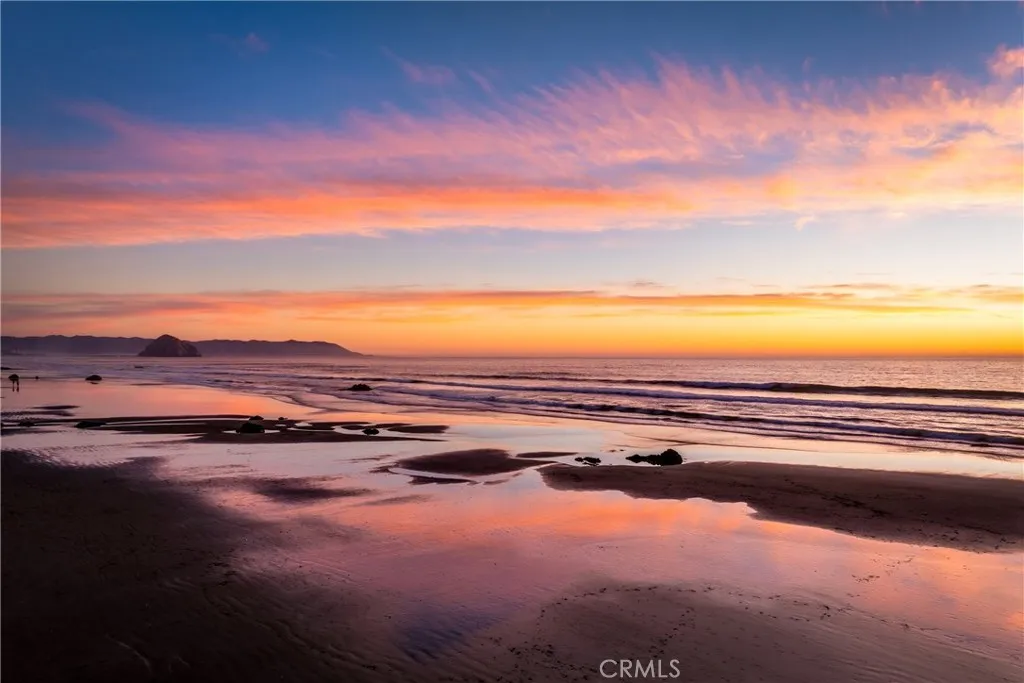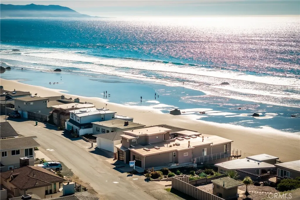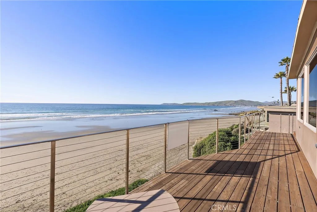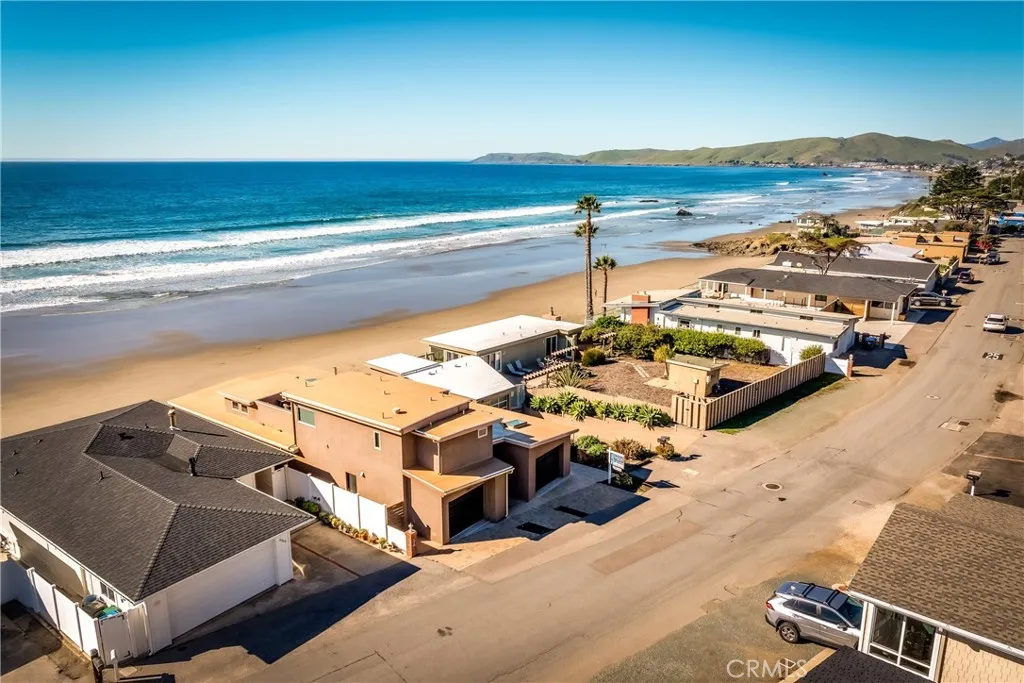 3352 Studio Dr., a luxurious oceanfront residence in Cayucos, CA. This modern home offers panoramic views from Morro Rock to the Cayucos Pier, providing a premier coastal living experience on California's Central Coast complete with your own private steps to the dog friendly and surfer's favorite beach. The custom open floor plan invites entertaining guests. The home features three bedrooms, highlighted by two primary suites with fireplaces and heated bathroom floors. The upper suite also offers a private deck with sweeping ocean vistas. The interior is finished with high-quality custom details, including alder wood cabinets, tile floors, and a unique "Wave Inspired" glass peninsula designed by a local artist. For added comfort, the residence is equipped with remote-controlled blinds and two tankless on demand water heaters. For peace of mind there's a security system and a reinforced sea wall. Additionally, the property provides ample parking for up to four vehicles via two separate garages and a driveway, along with extra storage space at the lower level which may allow for extension of living space. Check out this unique Central Coast home where every day is a vacation! All information deemed reliable, buyer to satisfy with their investigation..
