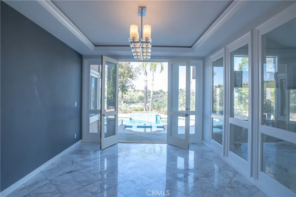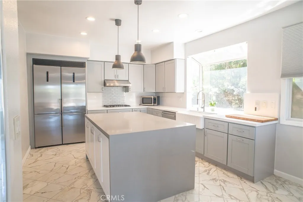 Remodeled Spanish villa in upscale Calabasas gated community Live among the stars (celebrities) and enjoy your own personal slice of heaven! Stunning 5 bedroom, 4 and 1/2 bath home available to rent. The house has been completely remodeled: new marble flooring throughout downstairs and beautiful hardwood floors, upstairs. Brand new kitchen with subzero refrigerator, farmers' sink, and high-end appliances. A formal dining room and wet bar complete with a wine fridge adjoin a step-down family room with a fireplace. There is one bedroom and full bath downstairs (with its own entrance and access to outside), perfect as an office, mother-in-law suite, or guest room. Upstairs you will find the gorgeous master bedroom suite with its own fireplace, a huge walk-in closet, and a newly remodeled bath with a separate toilet room. There is an additional en suite bedroom upstairs and two other bedrooms with shared (jack and Jill) baths. Outside, there is a pool, spa, waterfall feature, and outdoor grill...complimented by a beautiful, city light view. The home also features high ceilings, a central vacuum, and three car garage...all in a secure, guarded community that is close to the Calabasas commons, highly rated las virgenes school district, and minutes away from the beautiful beaches of Malibu. short term is OK