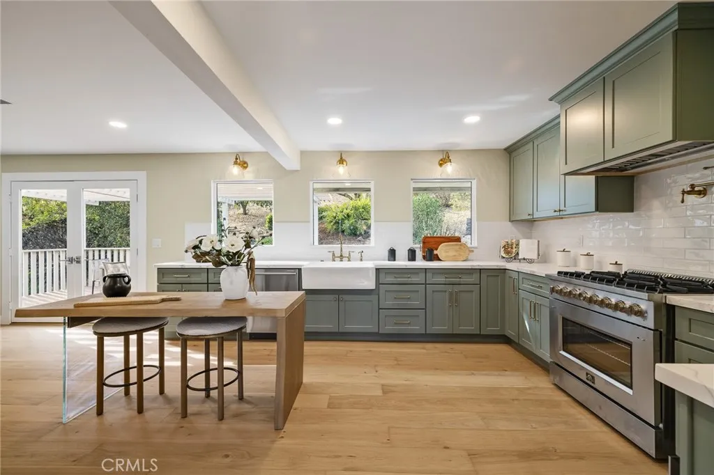 Welcome to your Completely Renovated, Modern-Contemporary Masterpiece nestled on a Private road in the serene back corner of Ojai. This Stunning property offers an Unparalleled combination of Secluded Tranquility and High-End, Designer-Curated Luxury, having been meticulously transformed by a Professional Designer into a 2,807 square foot Sanctuary featuring Five bedrooms and Four bathrooms. The Heart of this Home is the Spectacular open-concept living area, anchored by a custom Gourmet Kitchen outfitted with all new, High-End Appliances, and the attention to detail continues into the Luxurious Custom Bathrooms, offering a true Spa-like retreat. This renovation is comprehensive and worry-free, featuring New Hardwood Floors throughout, a New HVAC system, a New Septic System, and multiple New Windows that flood the space with Natural Light, all complemented by New Garage Doors that complete the Contemporary Exterior. Situated on a generous 31,102 square foot lot, this home provides incredible space and maximum privacy, ready for its next discerning owner to enjoy the famous Ojai tranquility undisturbed.