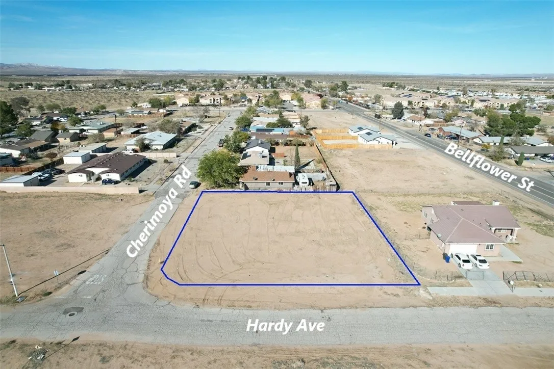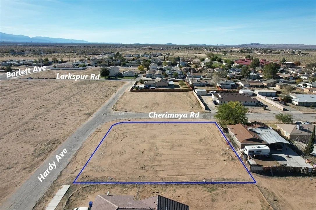**Exceptional Location and Prime Investment Opportunity! ** Welcome to an incredible opportunity nestled in the heart of Adelanto! This prime .41-acre corner lot, nearly 1800 sf, located at the intersection of Cherimoya and Hardy, is perfectly positioned for growth and development, Zoned for Residential use (R-S5), this flat parcel is ready for your vision. This property is adjacent to residential lots with public utilities and underground electricity, ideal for a single-family home, ADU, or duplex. Zoning allows up to 5 units per acre according to Adelanto Zoning Maps. Imagine the possibilities Utilities are easily accessible, with paved roads and a fire hydrant situated right in front of the property. The property is situated approximately 0.5 miles west of Highway 395, offering easy connectivity to major routes and nearby amenities, with convenient access to the nearby Adelanto airport. Please be aware that the dotted lines shown in the accompanying images are merely estimates and do not depict the precise boundaries of the property. It is highly recommended that prospective buyers conduct thorough due diligence to determine exact property lines, utility connections, and any associated costs, for your convenience. Make your offer today.