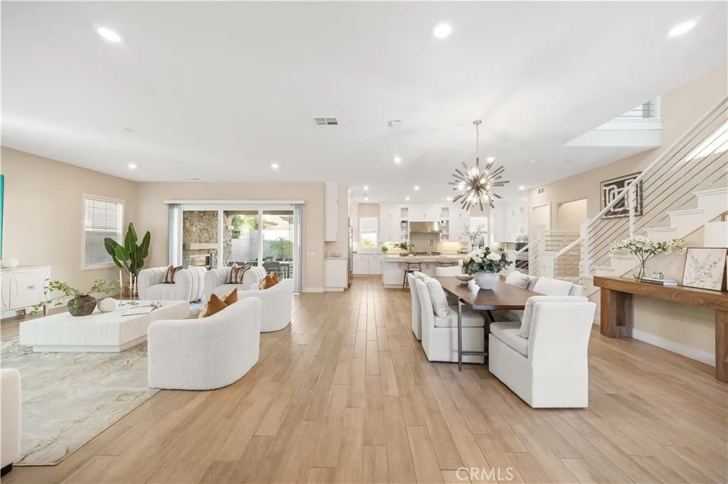 Located in the highly desirable Altair community, this beautifully maintained home offers resort-style living with three community pools, tennis courts, scenic hiking trails, and 24-hour guarded security. The home features an open-concept floor plan with granite countertops and wood-look tile flooring throughout. The main level includes one bedroom with full bath, one office and a half bathroom, an ideal for guests or multi-generational living. Upstairs offers three additional bedrooms and a spacious loft/den, perfect for a media room, home office, or family lounge. The primary suite is generously sized and includes dual sinks and a large soaking tub. Conveniently located near Portola High School and Woodbury Town Center. Solar was paid off.
