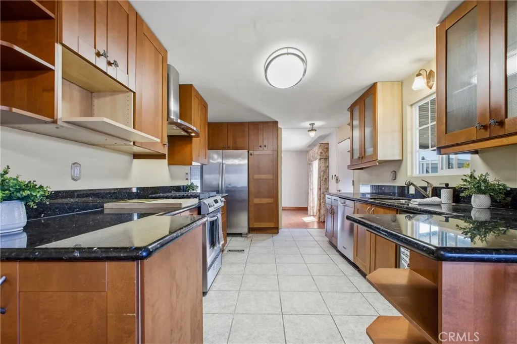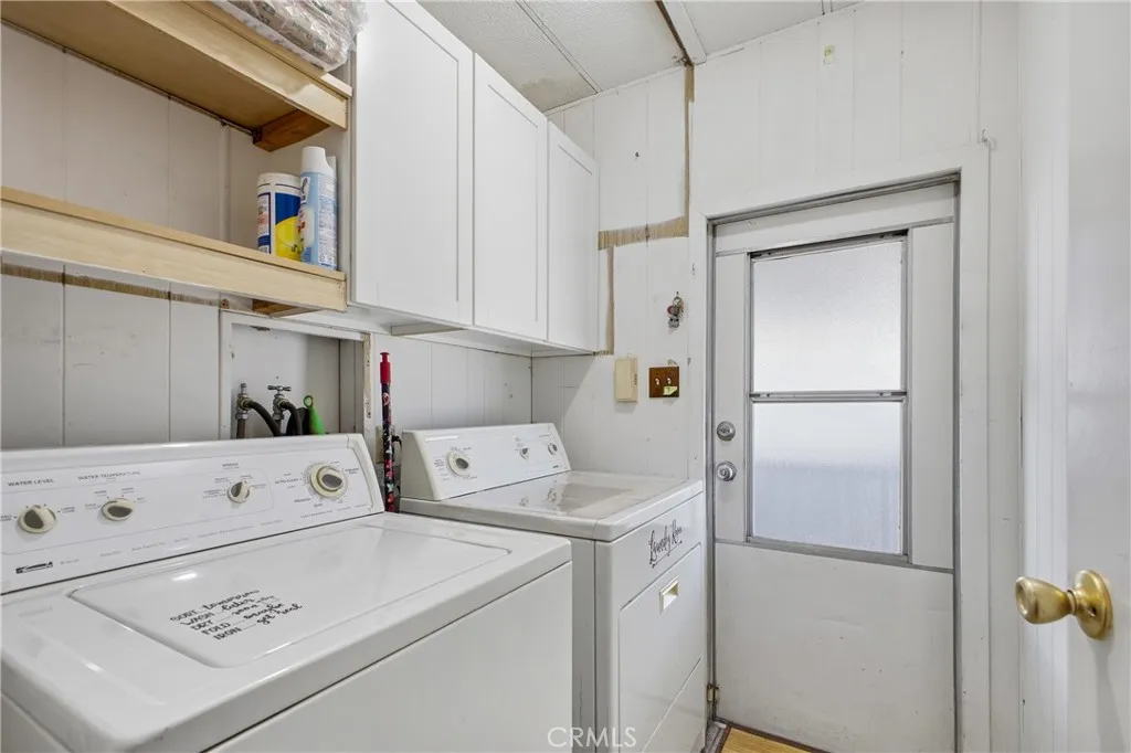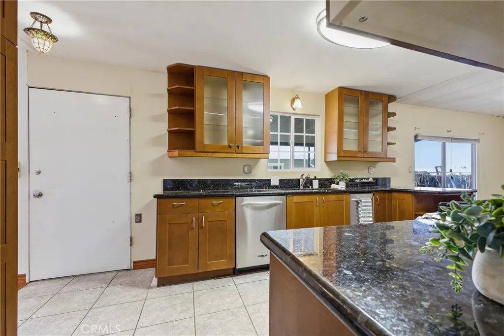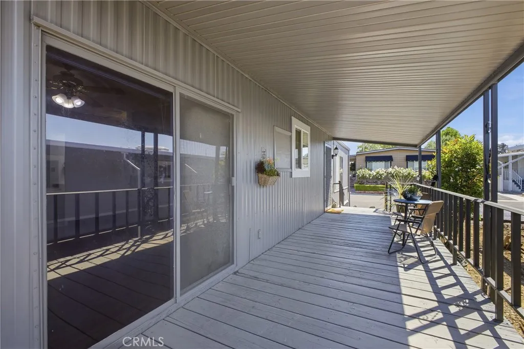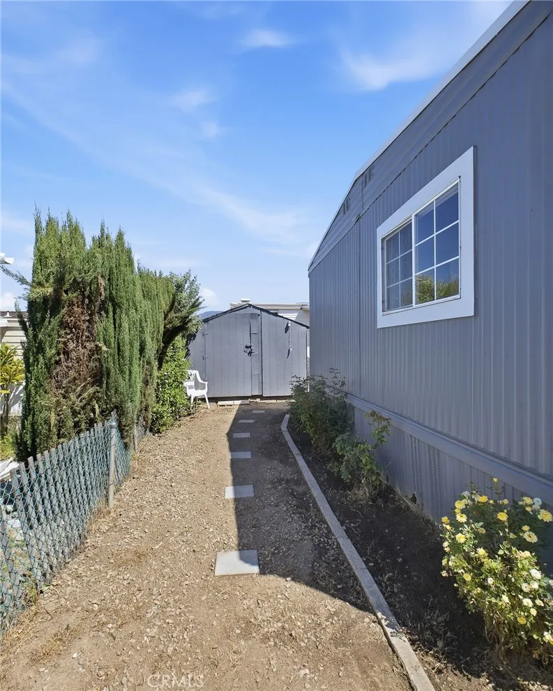 This great mobile home rests in a lovely La Verne neighborhood, and is conveniently located near the entrance of the highly sought-after Foothill Terrace 55+ senior park. The home offer a well-designed floor plan featuring a large living room with a row of windows allowing for plenty of natural light, and an inviting open dining area. The spacious kitchen has wood cabinets, granite countertops, ample cupboard space, open display shelves, tile floor, pantry, microwave shelf, double stainless steel sink, and stainless steel appliances, including the stove, refrigerator and dishwasher. The adjacent family room, with sliding glass door leading to the covered porch, is perfect for gatherings or to use as an office. The home offers a total of 2 bedrooms and 2 bathrooms, including the primary bedroom suite with a walk-in closet and a private bathroom with a large vanity, double sinks and granite countertop. Other amenities include 1,344 square feet of living space, wood laminate flooring, laundry room with washer and dryer, ceiling fans and central air and heat. The exterior space includes an inviting covered front porch, 2-car carport parking and a storage shed. The park offers two clubhouses, sparkling pool and spa, gym, library billiard room, and many enjoyable social activities.