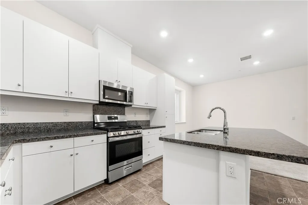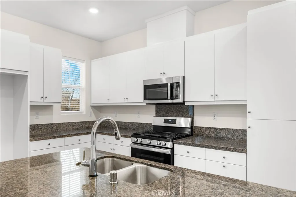 Discover this impeccably updated 4-bedroom, 3-full-bath modern townhouse, freshly painted throughout and professionally cleaned top to bottomtruly turnkey! The open-concept first floor features a sleek gourmet kitchen with modern stainless steel appliances (stove, microwave, range hood, dishwasher) flowing seamlessly into a spacious living area. A generous downstairs bedroom with full bath provides flexibility for guests, in-laws, or home office, plus a large laundry room leading to the attached 2-car garage. Upstairs, the luxurious master suite includes dual-sink vanity, walk-in closet, and serene views. Two additional well-sized bedrooms share another dual-sink bathroom for convenience. This low-maintenance end-unit offers solar power for energy savings, a spacious concrete front yard ideal for relaxation or entertaining, superior natural light, privacy, and prime positioning near the community entrance with unobstructed views. The resort-style community includes a sparkling pool, tennis courts, gym, BBQ areas, parks, playgrounds, and more. Convenient location: minutes to I-15 for commuting, Victoria Gardens shopping and dining, top restaurants, and supermarkets.