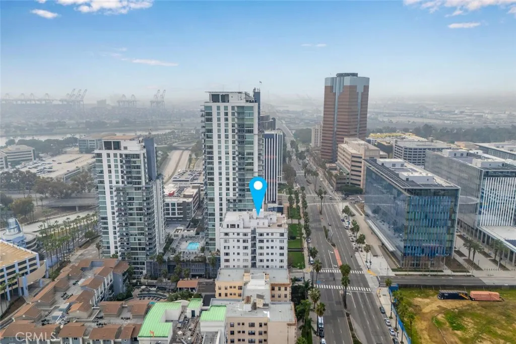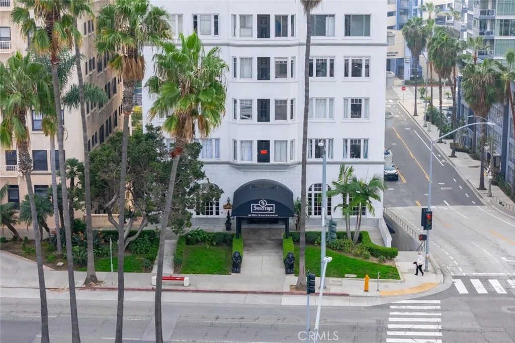 Downtown Long Beach setting Beach nearby Historic building with ocean-view shared spaces. Located in the iconic Sovereign Building, one of the few downtown Long Beach buildings that permits Airbnb, this residence blends classic character with modern upgrades. Original hardwood floors run thru the unit, complemented by a remodeled kitchen and a dedicated office area ideal for remote work or creative space. The upgraded bathroom features a newer vanity and stylish tile flooring. Unit 203 includes its own private storage space in the basement (not all units have this), adding valuable extra storage. Covered parking is available for $100 per month, a major advantage in downtown Long Beach where parking is in high demand. The historic building welcomes residents with a grand lobby and multiple shared amenities, including community laundry, a quiet library for reading or focused work, and a large open solarium/ party room. From this expansive common area, residents enjoy sweeping Pacific Ocean views and clear sightlines to the Queen Mary. Ideally situated near Pine Avenue and Shoreline Village, this home offers close proximity to popular dining, the Aquarium of the Pacific, theaters, the Long Beach Convention Center, and the waterfront. Convenient access to the Metro provides direct connections to Downtown Los Angeles and LAX, making this a prime location for full-time living, second-home ownership, or short-term rental investment. This is coastal urban living in one of Long Beachs most recognizable architectural landmarks.