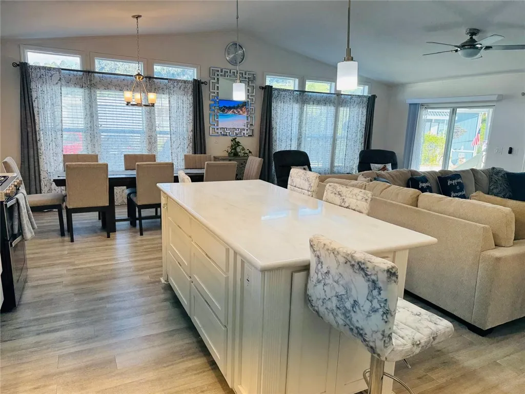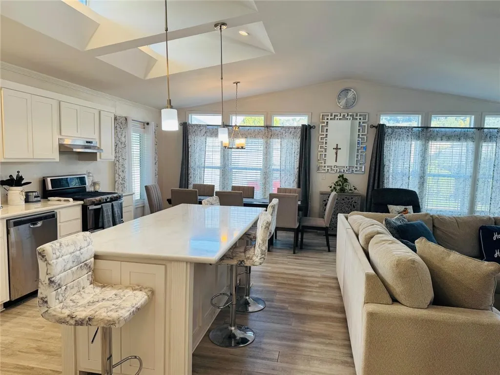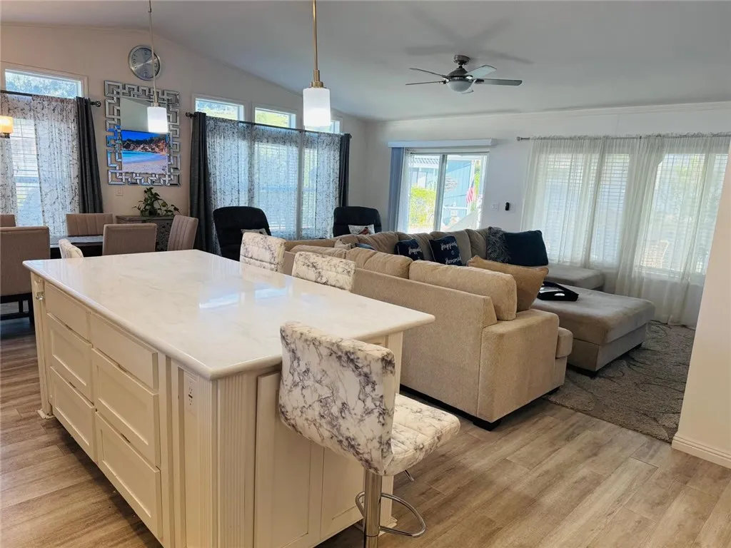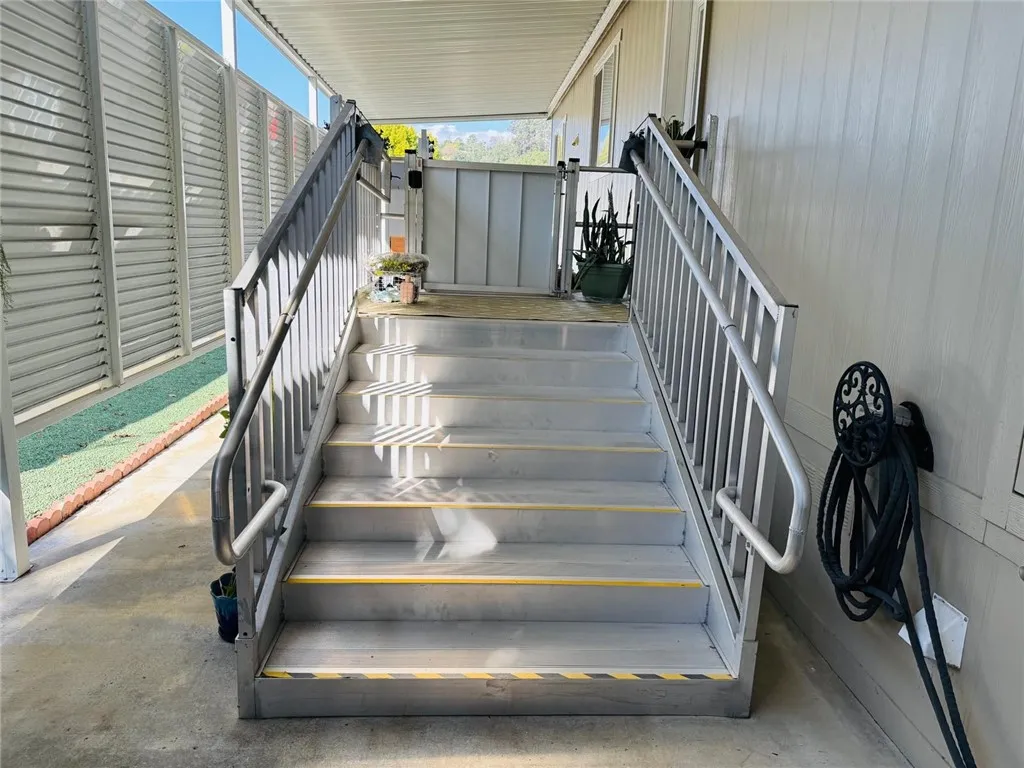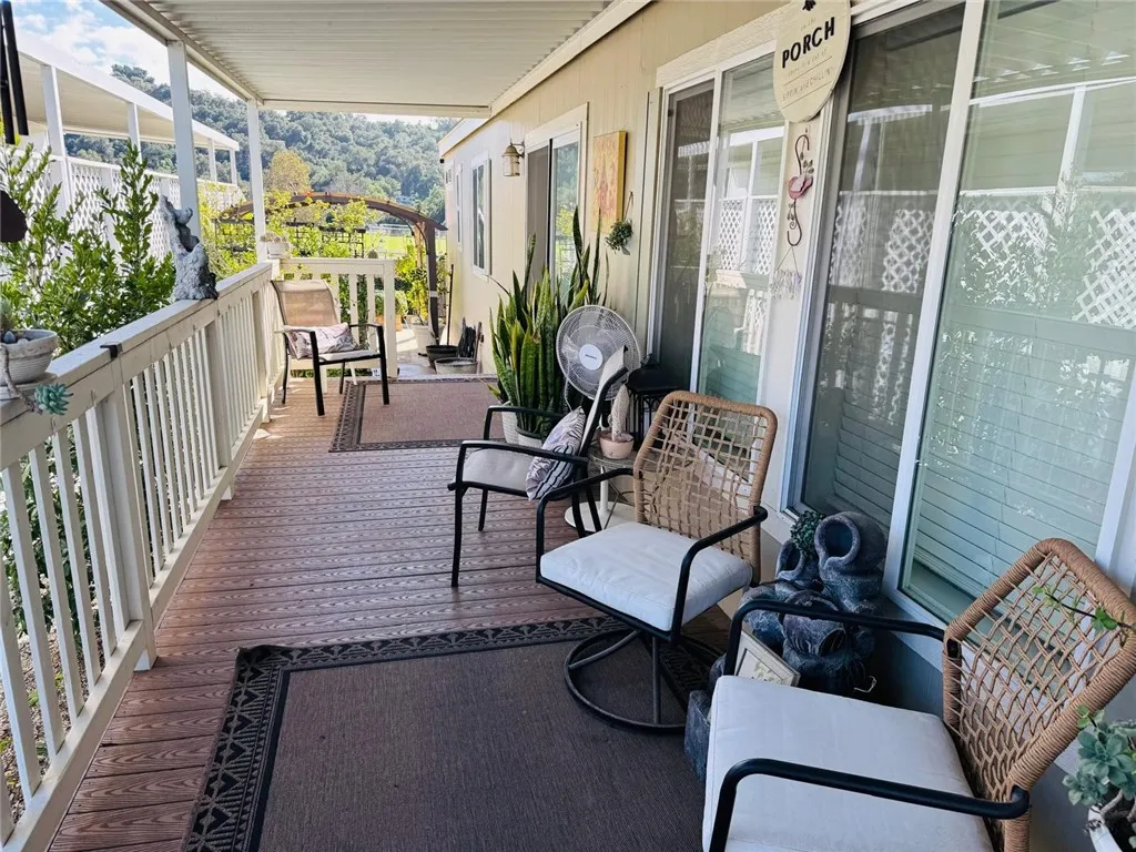 Welcome to Mira Valle Mobile Home Community, a peaceful, private, and highly sought-after 55+ community nestled in the heart of picturesque Ojai. This serene, culturally rich enclave celebrates artistic value with its welcoming atmosphere, beautiful mountain surroundings, & proximity to Ojai's renowned creative sceneperfect for those who appreciate a relaxed, inspiring lifestyle. This gorgeous contemporary home features wrap-around front windows and a large deck, perfectly positioned to capture breathtaking mountain views and the valley's natural beauty. Inside, the spacious open-concept floor plan is bathed in natural light, highlighted by cathedral ceilings with crown molding, clerestory double-pane windows, and skylight solar tubes that enhance the bright, airy feel. The well-appointed kitchen is both functional and stylish, boasting Corian countertops, stainless steel appliances, a double gas oven range, dishwasher, double-door refrigerator, and garbage disposal. Year-round comfort is assured with central air conditioning and heating, plus cordless ceiling fans in every room. The large primary bedroom includes a private rear entrance opening to a spacious back deckideal for quiet relaxation or entertaining while overlooking stunning mountain vistas. A dedicated laundry room with washer & dryer adds everyday convenience. Additional highlights include a handicap-accessible automatic aluminum side lift with an attached aluminum deck and stairs, an easy-access carport accommodating two vehicles (or an SUV), guest parking conveniently located directly in front, a storage she