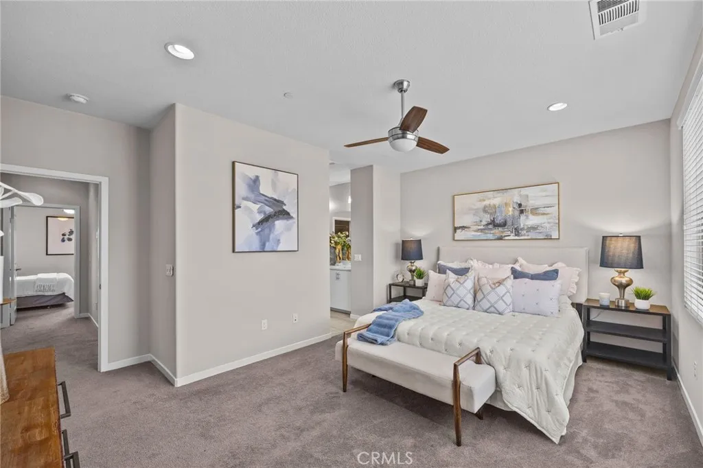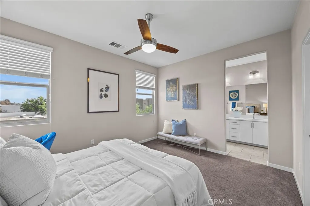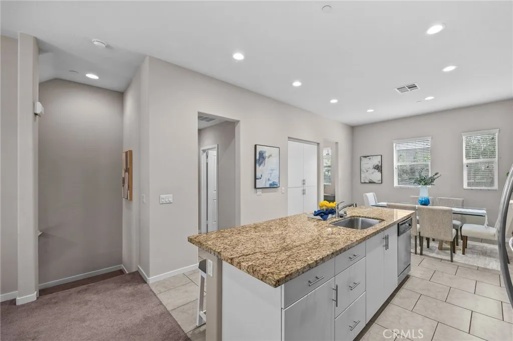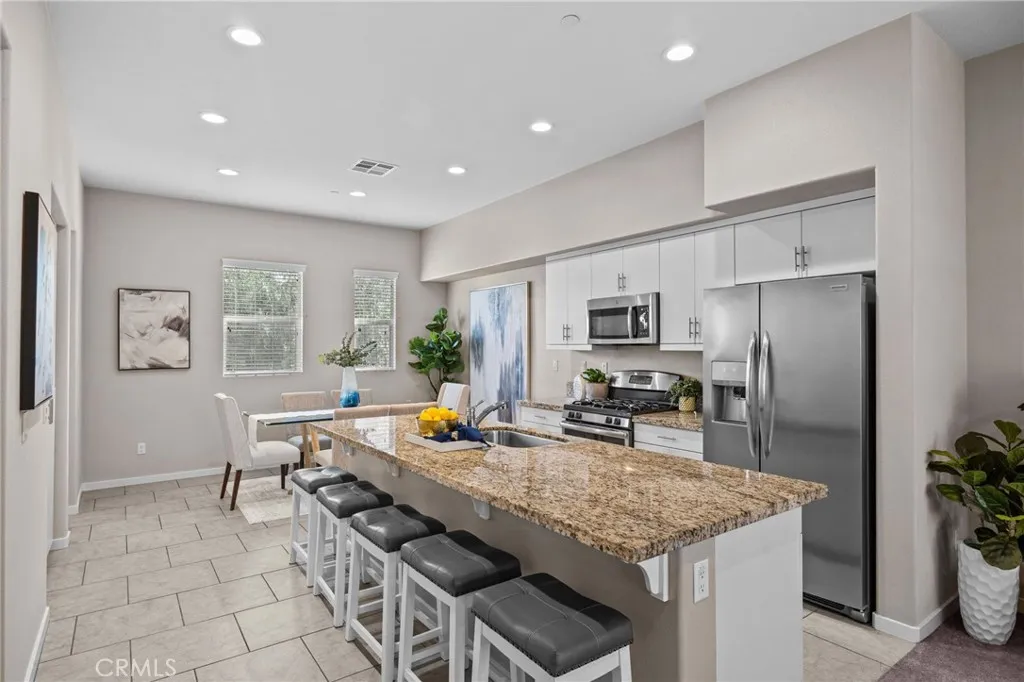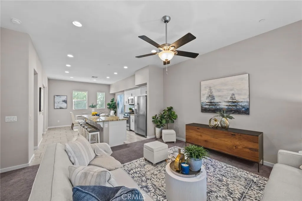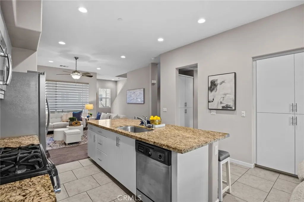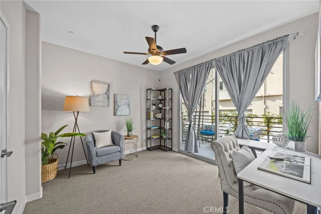 This stunning, upgraded condo is located in Upland Central, an exclusive Live/Work community of just 78 units. The ground level features a spacious tiled entry and a dedicated office space permitted for business use, complete with its own private patio and a large ADA compliant bathroomideal as a workspace, guest room, or study. The second level offers an impressive open floor plan with high ceilings, recessed lighting, a ceiling fan, and a bright living area that opens to a covered balcony. A generous dining space flows into the expansive kitchen, which includes a large island with abundant workspace and breakfast seating, plus a versatile prep area perfect for a tech center or additional pantry storage. The kitchen is outfitted with GE stainless steel appliances, a stainless steel smudge free refrigerator, Delta chrome pull out faucet, farmhouse sink, granite countertops, and ceramic tile flooring. A wall pantry, linen closet, and powder room complete this level. On the third floor, youll find both the primary and junior bedroom suites, along with a convenient laundry room equipped with LG stackable front loading washer and dryer. The primary suite features a walk-in shower, dual sinks, and a spacious walk-in closet. The junior suite includes its own private bath and walk-in closet as well. Large windows throughout the home bring in abundant natural light, creating a bright and airy atmosphere. Fresh painted interiors. Parking is plentiful at both the front and rear of the building, with direct access to a private 2-car garage. Freshly painted interiors. Community ameniti