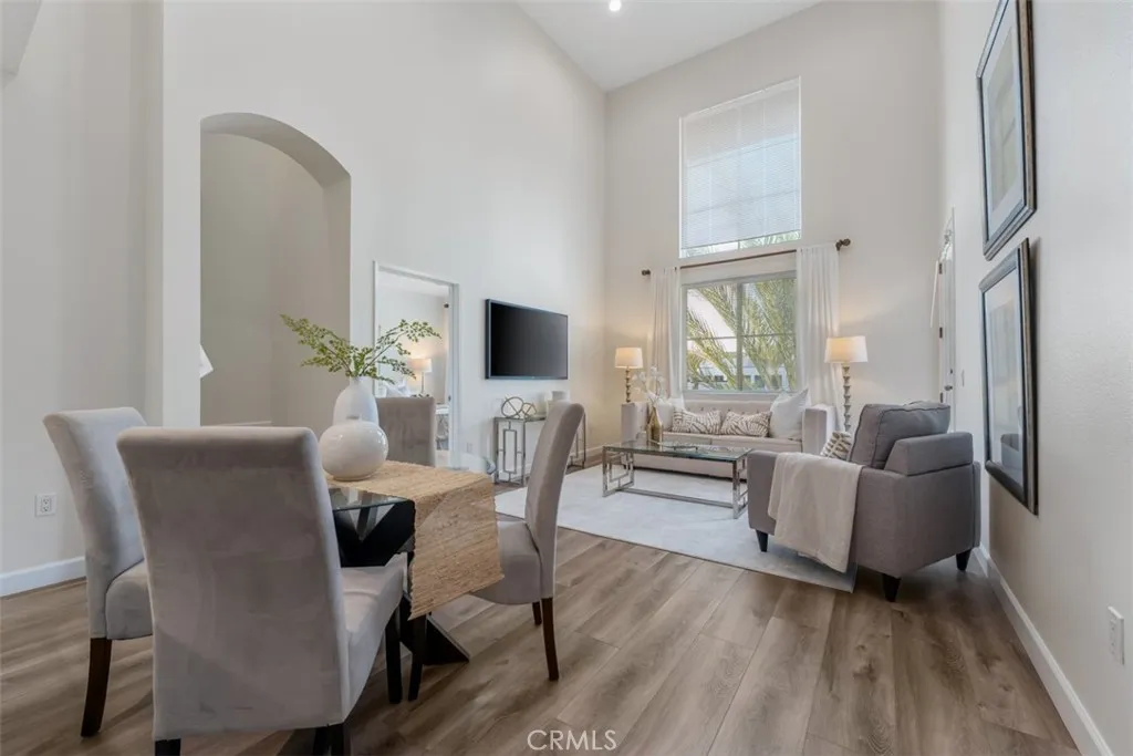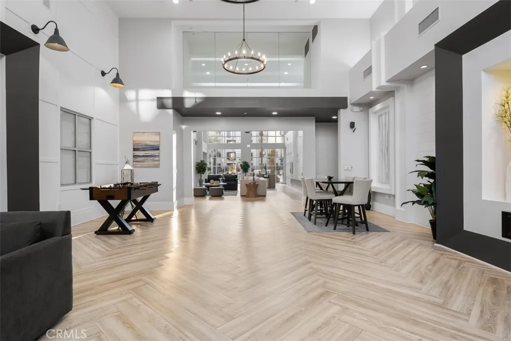 Experience refined urban living in this exceptional top-floor luxury residence located in Avenue One, in Irvine, one of the most prestigious, safest, and master-planned cities in the state. Known for its award-winning schools, walkable neighborhoods, cultural diversity, and premier city amenities, Irvine offers an unmatched Southern California lifestyle. This private top-level unit features no neighbors above, ensuring tranquility and exclusivity. The home showcases a dramatic high-ceiling living room filled with natural light, complemented by recessed lighting and a seamless open-concept kitchen, perfect for elegant entertaining and everyday sophistication. Enjoy outdoor living spaces, including a rear private patio/ balcony with street views. The thoughtfully designed floor plan offers two generously sized bedrooms and two full bathrooms, enhanced by a versatile loft space that functions beautifully as a third bedroom, executive home office, or creative studio. This residence has been meticulously remodeled with brand-new luxury vinyl plank wood flooring, modern baseboards, and fresh designer interior paint, delivering a turnkey, contemporary aesthetic. Residents enjoy access to resort-quality HOA amenities, beginning with a luxurious resident lounge with service kitchen, elegant seating areas, sparkling pool and spa, tennis and basketball courts, and retail shops just steps away. Perfectly positioned near major freeways, shopping centers, fine dining, public parks, and entertainment, this home blends luxury condo living, walkability, and convenience in one of Orange Coun