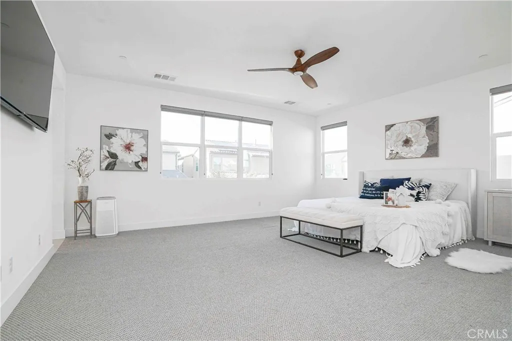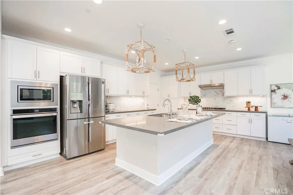 Welcome to 4128 Pompia Way, a beautifully upgraded 2019-built home located in the gated Bedford community of South Corona. This spacious residence offers approximately 2,941 sq ft of living space on an approximately 5,000 sq ft lot, featuring 4 bedrooms, 4 bathrooms, and a 3-car garage, perfectly designed for modern living. The first floor showcases hardwood flooring throughout, creating a warm and elegant atmosphere. The living room is highlighted by a custom stone veneer accent wall and a ceiling fan, providing both visual appeal and comfortideal for Coronas warm climate. The gourmet kitchen is the centerpiece of the home, featuring a large center island, quartz countertops, and designer pendant lighting above the island, creating a soft and inviting ambiance. The adjacent dining area is enhanced by a beautiful decorative ceiling light, setting the tone for cozy dinners and memorable gatherings. Upstairs, the conveniently located laundry room features upgraded tile flooring, adding both functionality and a refined touch. The home is also equipped with a water softener system, providing improved water quality and added comfort throughout the entire home. The thoughtfully designed floor plan offers excellent flow, privacy, and flexibility for family living, entertaining, or working from home. One of the homes standout features is its exceptional locationthe community is adjacent to a nearby shopping plaza with Amazon Fresh, EOS Fitness, Starbucks, and urgent care, offering unmatched everyday convenience. In addition, the home is just minutes from major shopping centers feat