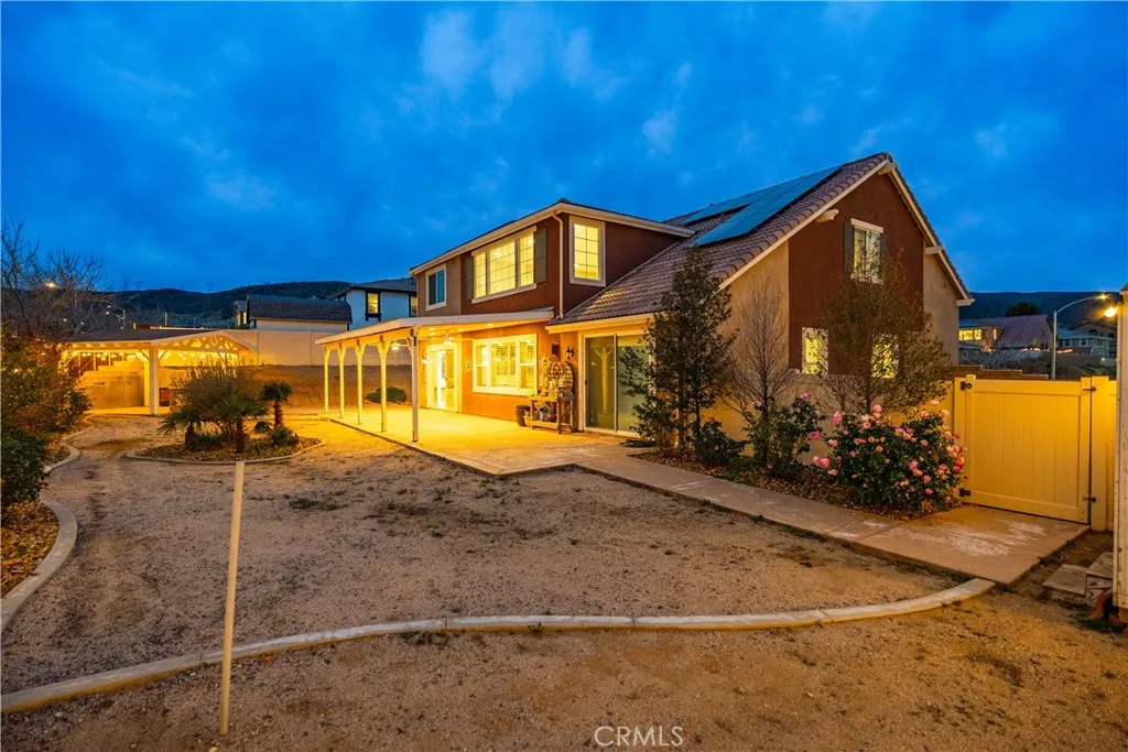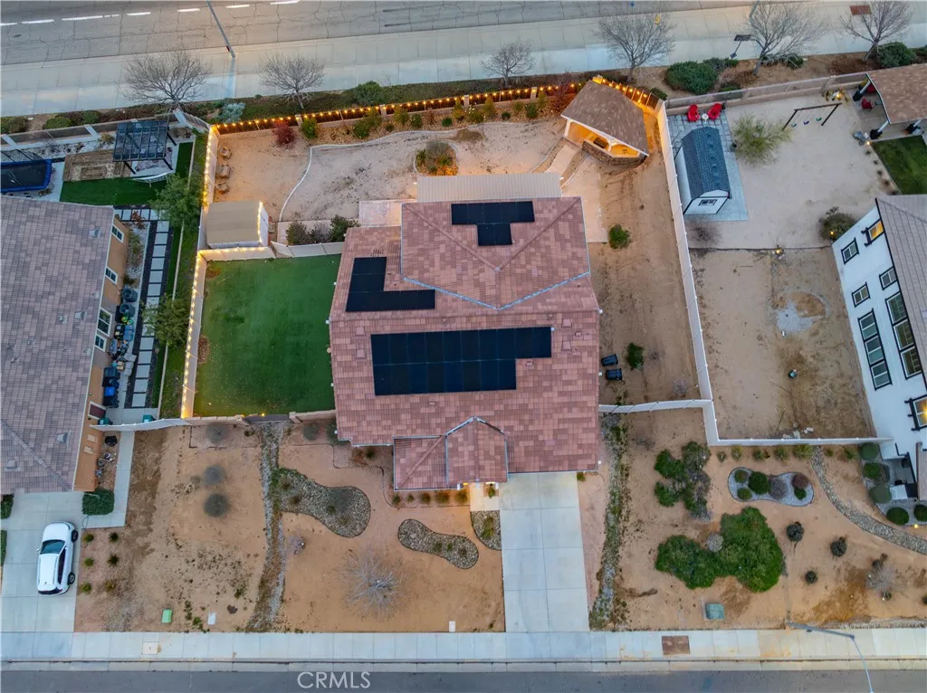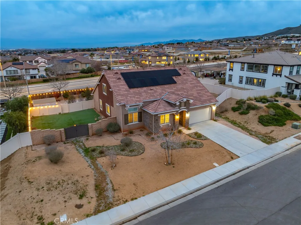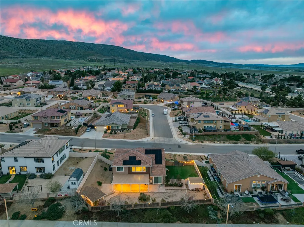 ***LIVE BEAUTIFULLY*** Welcome to this stunning two-story Palmdale residence, thoughtfully designed for comfort, luxury, and multi-generational living. The front yard is meticulously landscaped. No HOA or Mello-Roos! The gourmet chefs kitchen is a true showstopper, featuring quartz countertops, stainless steel appliances, custom cabinetry, a wine cooler, deep sink, LED recessed lighting, and expansive barstool seating. A massive walk-in pantry provides exceptional storage and functionality. The spacious family room boasts soaring high ceilings and a beautiful fireplace and includes upgraded flooring and baseboards. The downstairs primary suite offers a private retreat with dual vanities in a spa-inspired bathroom with a massive walk-in closet. An additional downstairs in-law suite includes its own private bathroom and kitchenette, ideal for multi-generational living. Upstairs, the elegant railings leads to a HUGE open loft space and additional large bedrooms and bathrooms.The backyard is built for enjoyment and entertaining, featuring a covered patio, BBQ area, and grassy play space. This home also includes RV ACCESS, and FULLY paid solar, providing both sustainability and long-term savings.