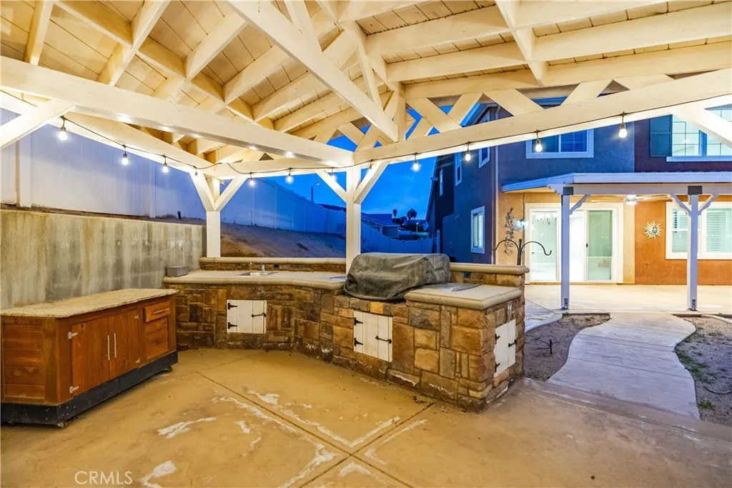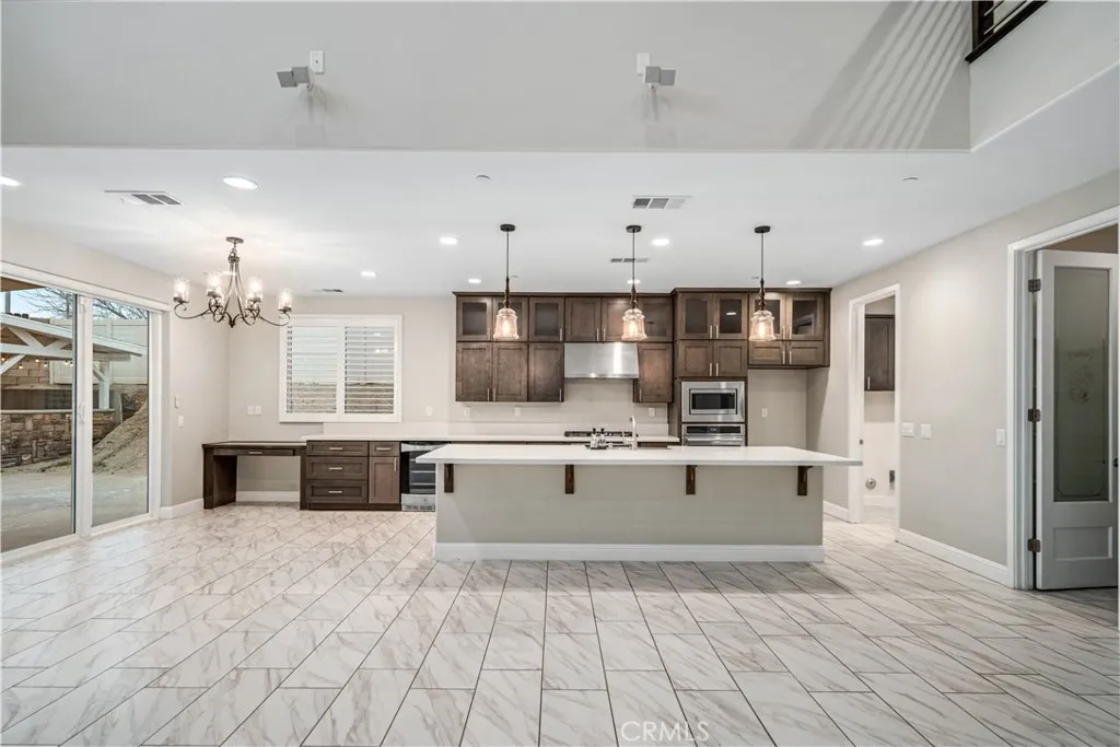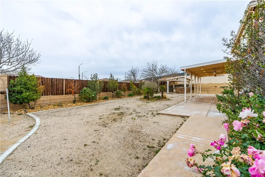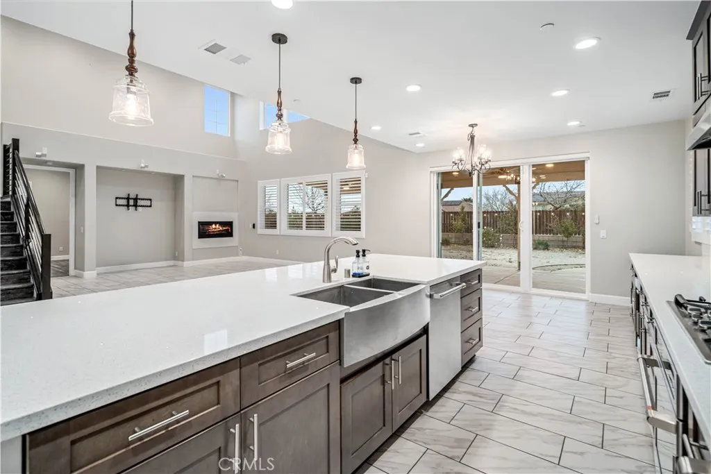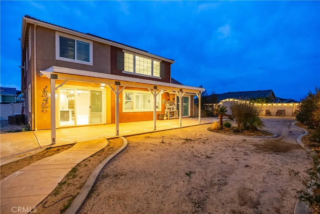 ***LIVE BEAUTIFULLY*** Welcome to this stunning two-story Palmdale residence, thoughtfully designed for comfort, luxury, and multi-generational living. The front yard is meticulously landscaped. No HOA or Mello-Roos! The gourmet chefs kitchen is a true showstopper, featuring quartz countertops, stainless steel appliances, custom cabinetry, a wine cooler, deep sink, LED recessed lighting, and expansive barstool seating. A massive walk-in pantry provides exceptional storage and functionality. The spacious family room boasts soaring high ceilings and a beautiful fireplace and includes upgraded flooring and baseboards. The downstairs primary suite offers a private retreat with dual vanities in a spa-inspired bathroom with a massive walk-in closet. An additional downstairs in-law suite includes its own private bathroom and kitchenette, ideal for multi-generational living. Upstairs, the elegant railings leads to a HUGE open loft space and additional large bedrooms and bathrooms.The backyard is built for enjoyment and entertaining, featuring a covered patio, BBQ area, and grassy play space. This home also includes RV ACCESS, and FULLY paid solar, providing both sustainability and long-term savings.