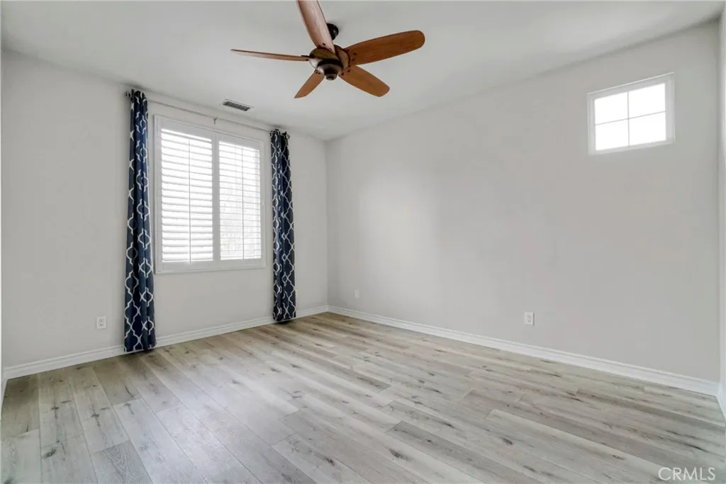 Motivated Seller! Best Priced Home in the Community! Nestled in the sought-after, 24-hour guard-gated community of The Woodlands in Valencia, this stunning home offers both privacy and luxury. The community is renowned for its beautifully manicured common areas and exceptional amenities, including a pool and spa, clubhouse, basketball court, pickleball, and tennis courtsmaking it a perfect place for relaxation and recreation. Conveniently located on the First Floor, the spacious Primary Suite features a large walk-in closet and an updated en-suite bath with quartz countertops, upgraded tiles, a separate shower, and a luxurious bathtub for ultimate relaxation. With no single-story homes in The Woodlands, this two-story gem with Downstairs Primary Bedroom Suite is a popular choice! Two generously sized bedrooms upstairs, offering plenty of space and comfort. Both bathrooms in the home have been thoughtfully updated with modern finishes, including quartz countertops and stylish fixtures. The gourmet kitchen features a large quartz island and white cabinetry, offering a bright and inviting space for cooking and entertaining. Plantation shutters throughout add a touch of elegance and privacy to the home. Step outside to a beautifully planted backyard with mature landscaping, ensuring privacy and a serene atmosphere. The side patio courtyard offers a perfect outdoor retreat for relaxation and enjoyment. Enjoy the peace and security of a guard-gated community while being just minutes away from all the amenities Valencia has to offer. This home is a true must-see! With its updated